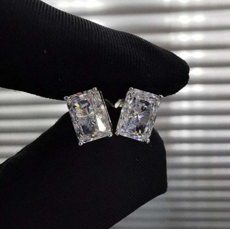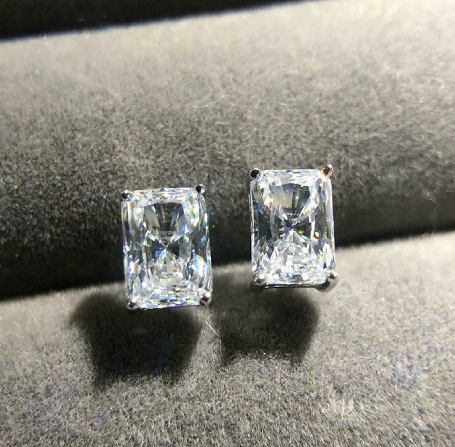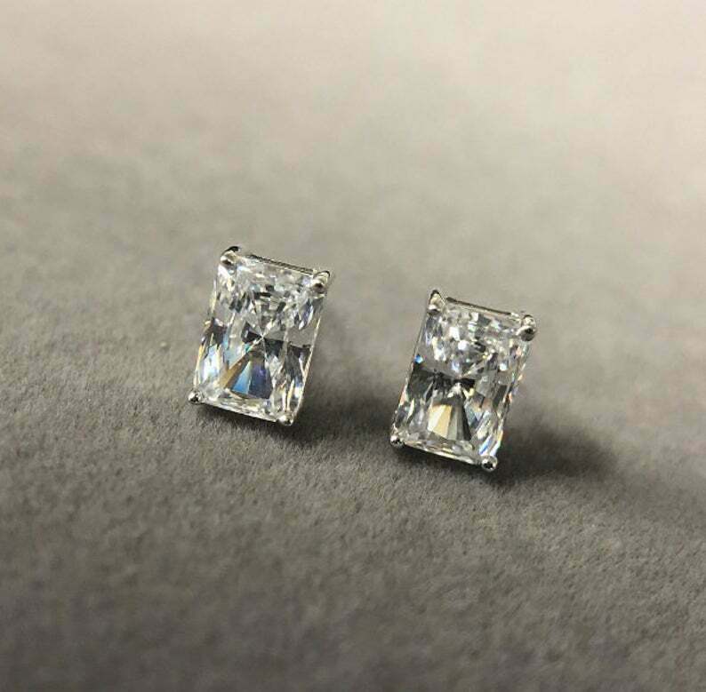 1.2ct Stud Earrings Radiant Cut Diamond Solitaire Women 14k White Gold Finish