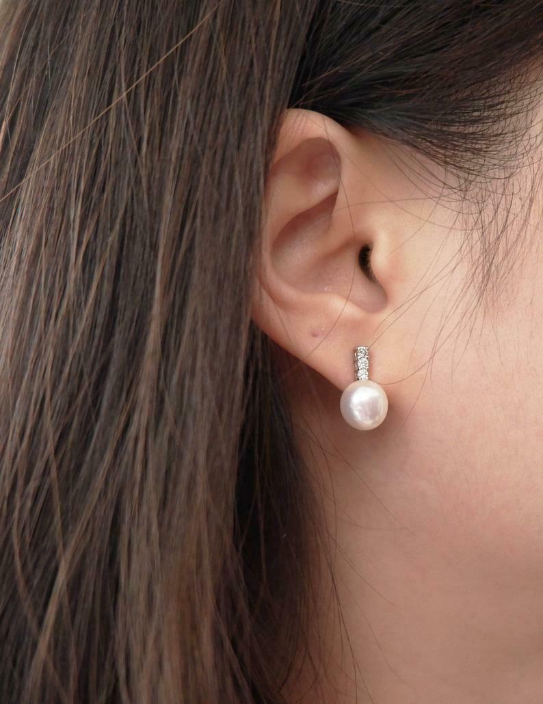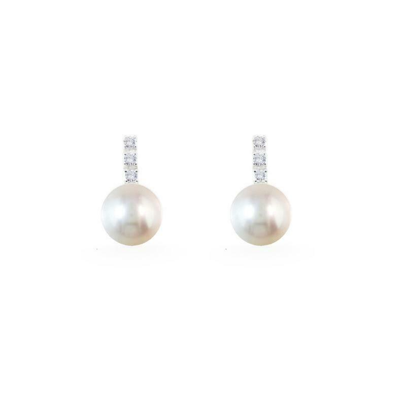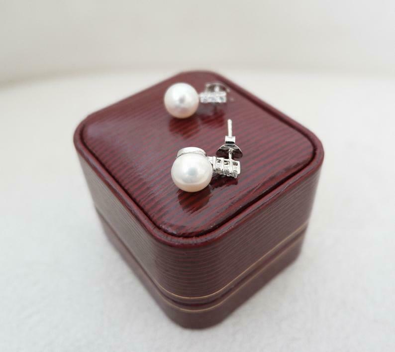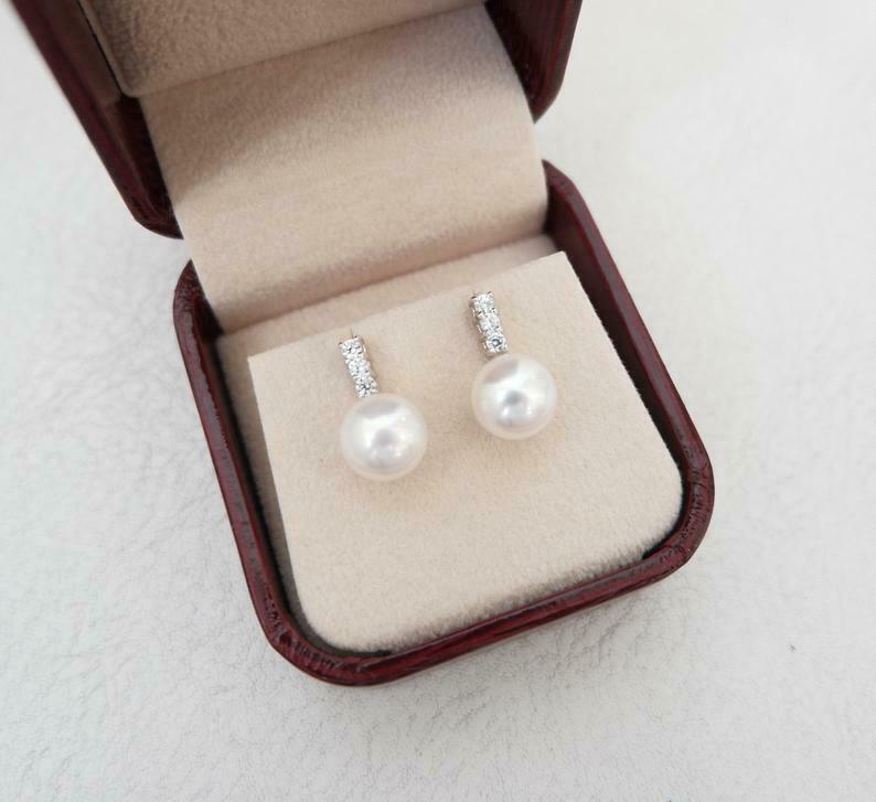 1.2ct Stud Earrings Round Cut Diamond Pearl Dainty Design 14k White Gold Finish