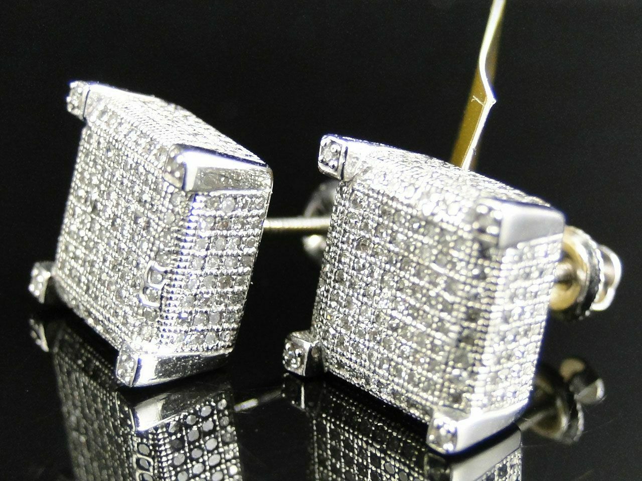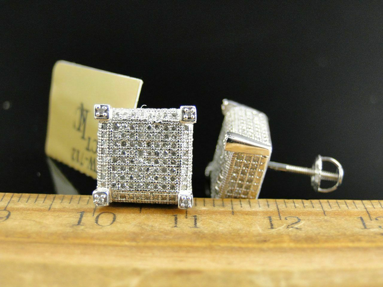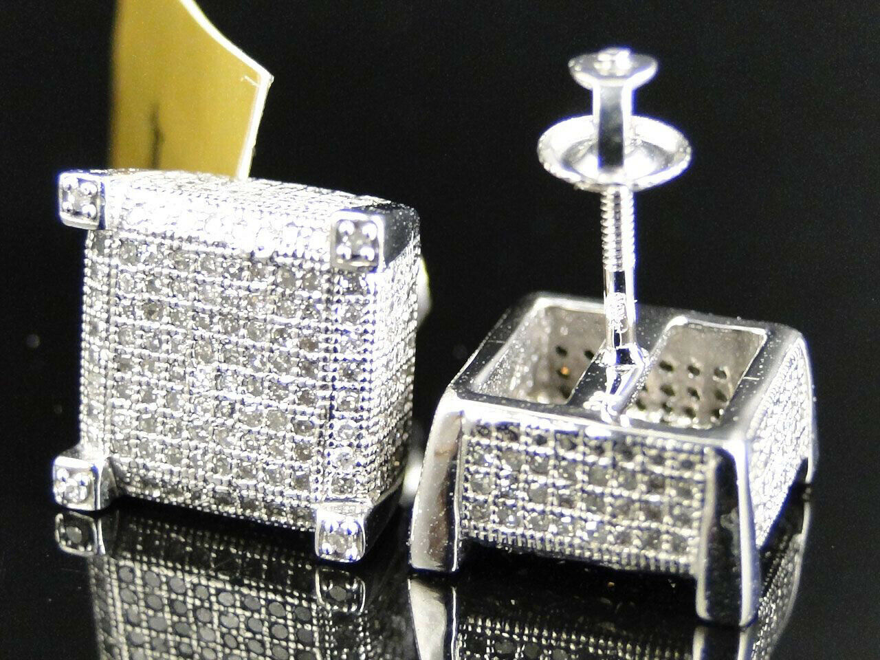 1.35ct Round Diamond Ice Cube Square Cluster Stud Earrings 14k White Gold Finish