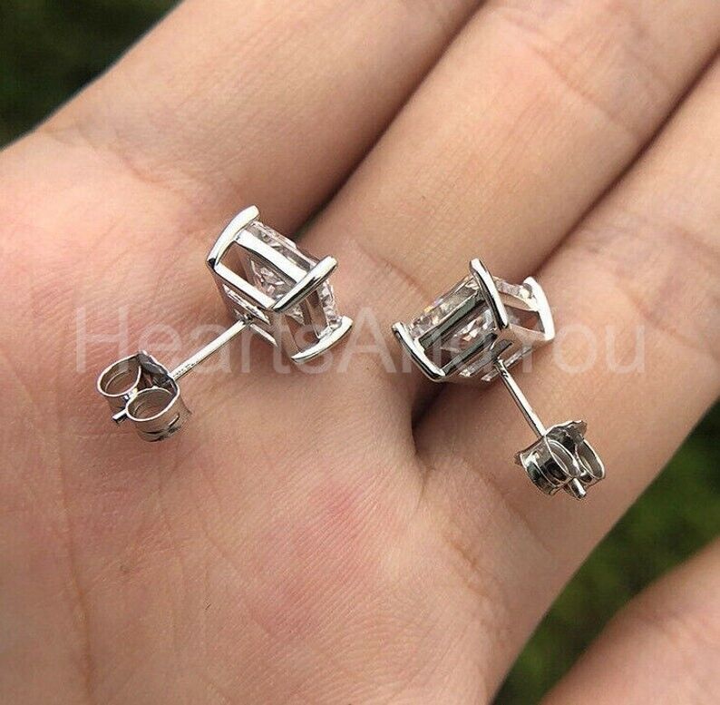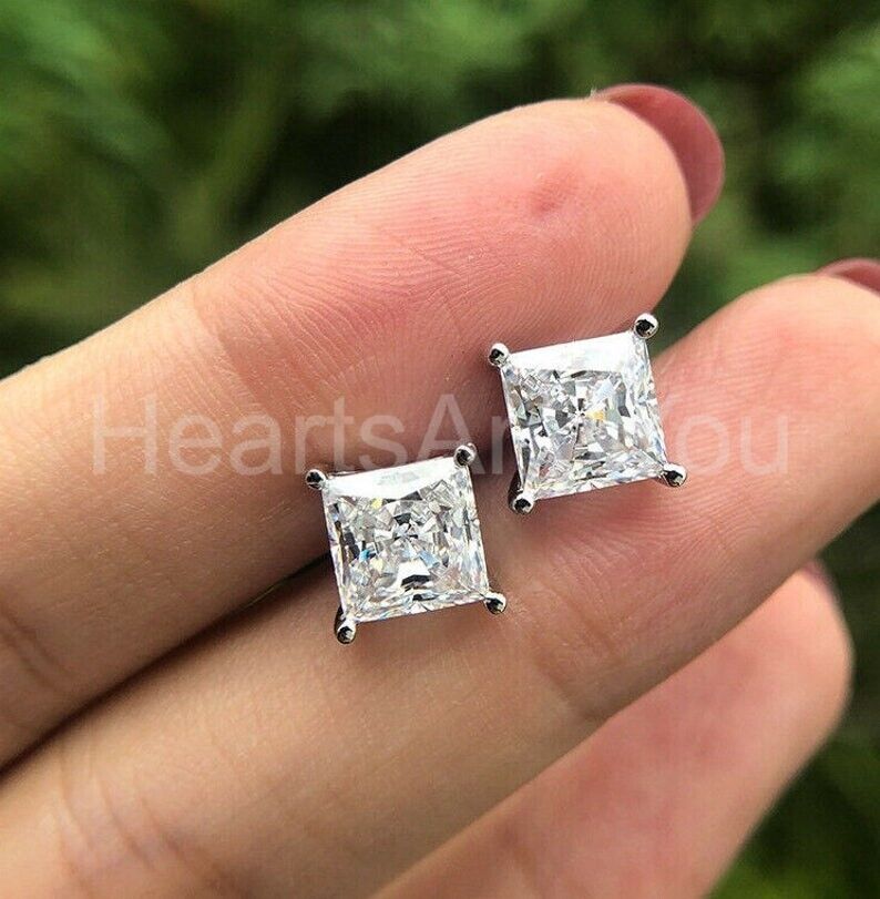1.3ct Princess Simulated Diamond Solitaire Stud Earrings 14K White Gold Plated