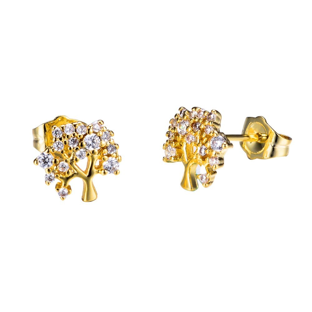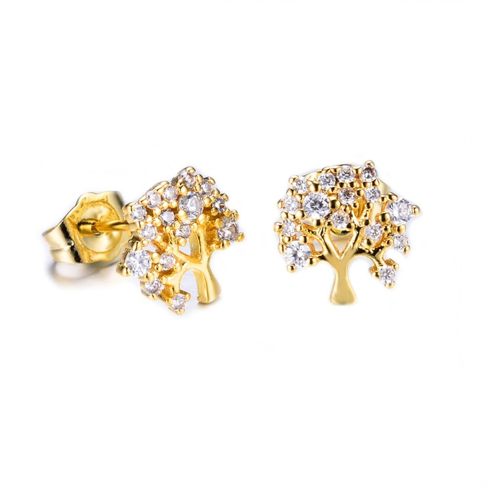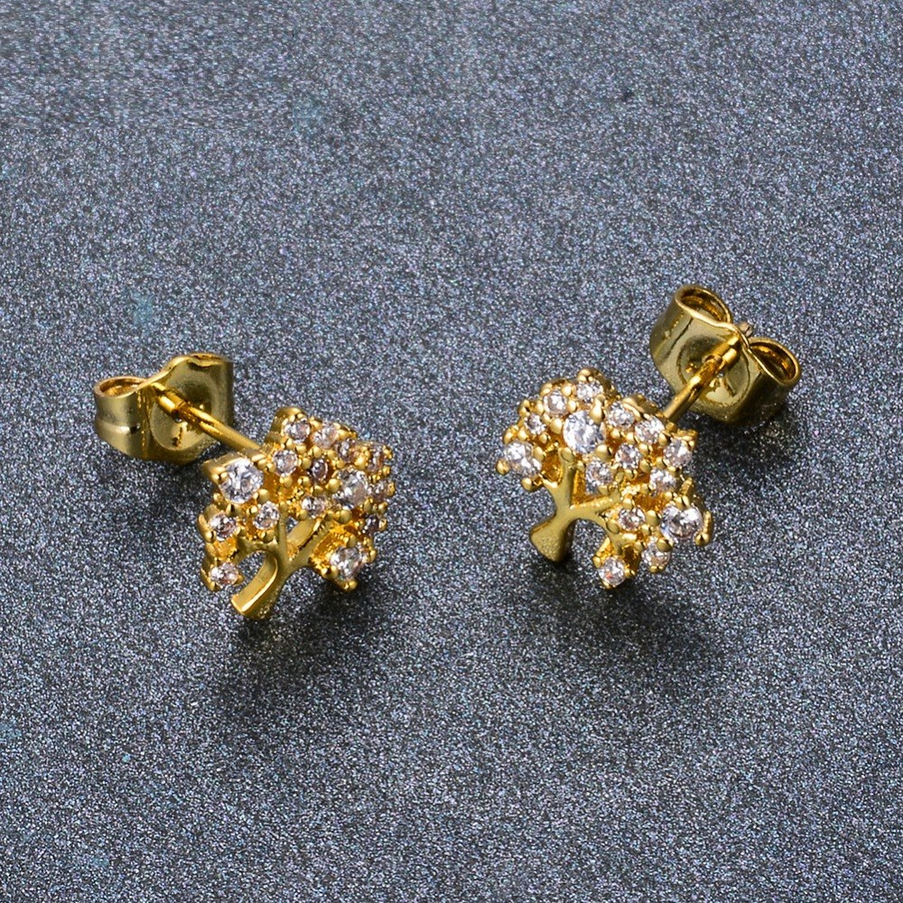 1.3ct Round Cut Diamond Tree Branch Style Stud Earrings 14k Yellow Gold Finish