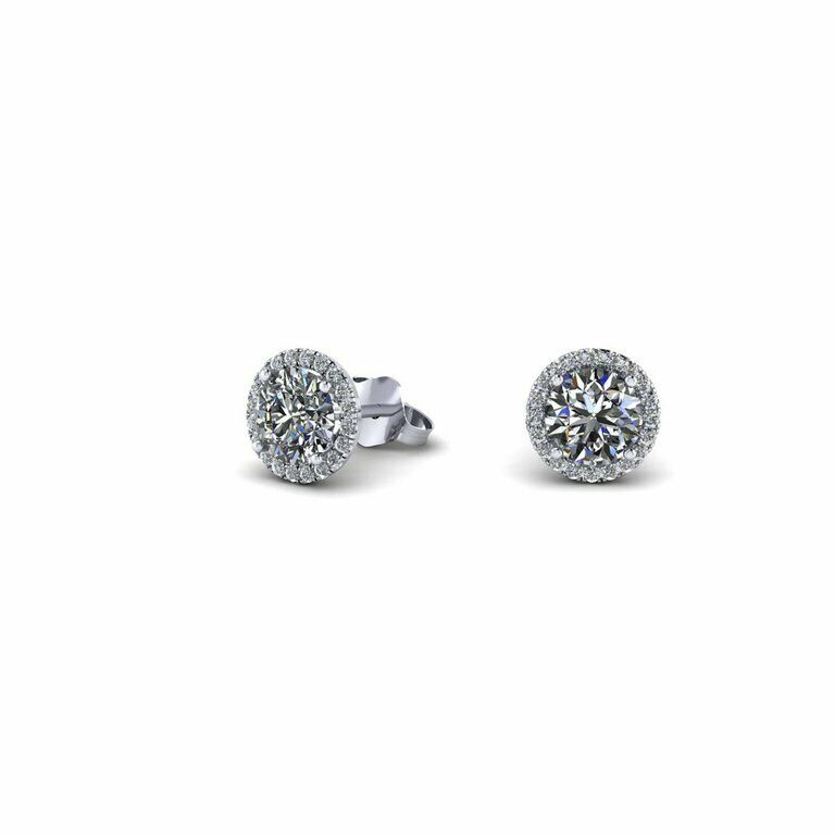 1.3ct Round Cut VVS1D Diamond Halo Solitaire Stud Earrings 14k White Gold Finish
