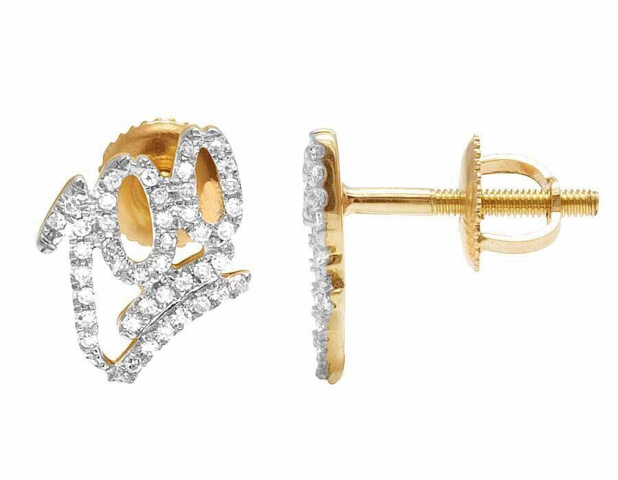 1.4ct Round Cut VVS1 Diamond 100 Logo Stud Earrings Women 14k Yellow Gold Finish