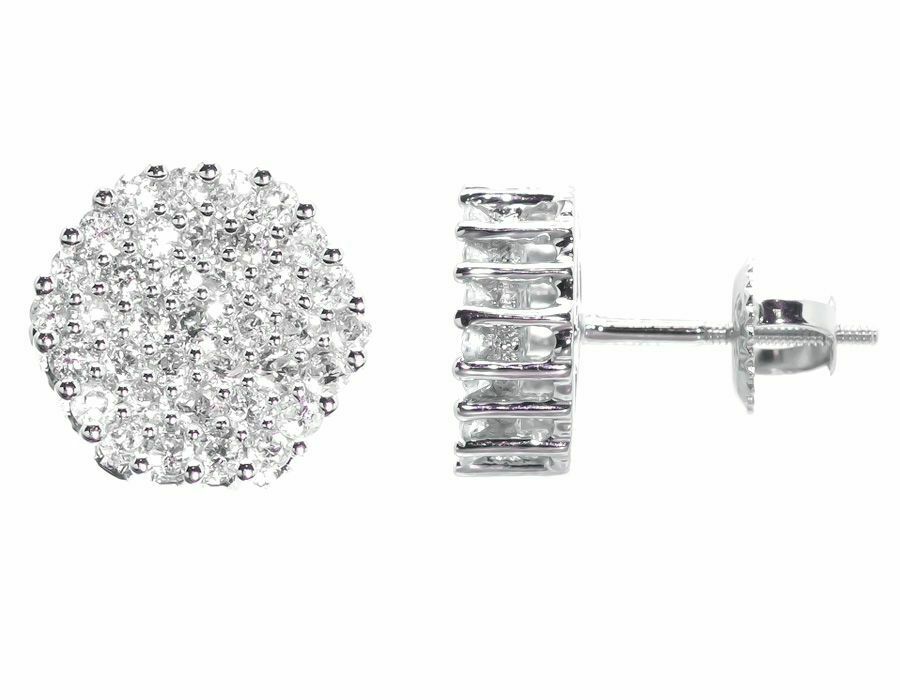 1.4ct Round Cut VVS1D Diamond Cluster Stud Earrings Women 14k White Gold Finish