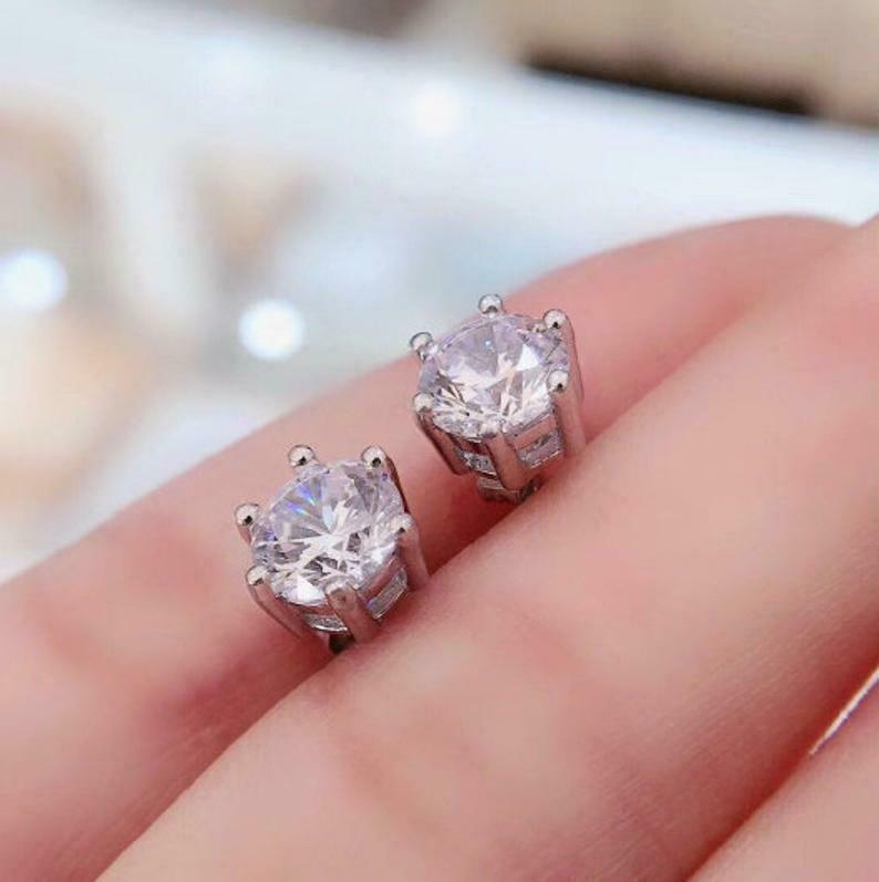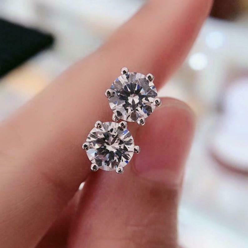 1.55ct Stud Earrings Round Cut Diamond Classic Solitaire 14k White Gold Finish