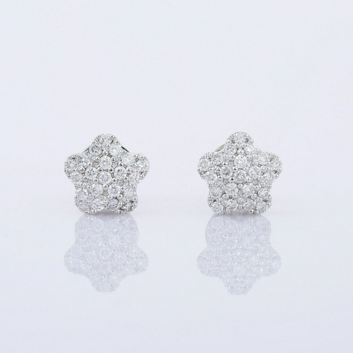1.56ct Stud Earrings Round Cut Diamond Star Cluster 14k White Gold Finish