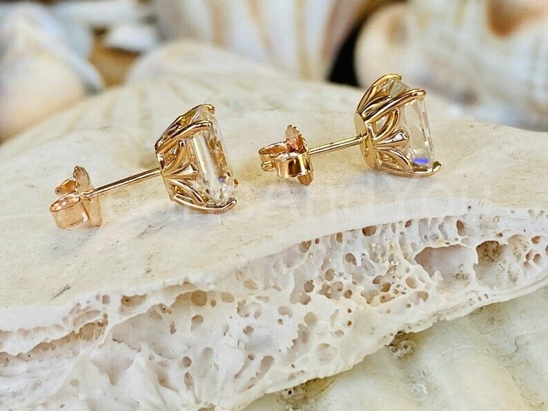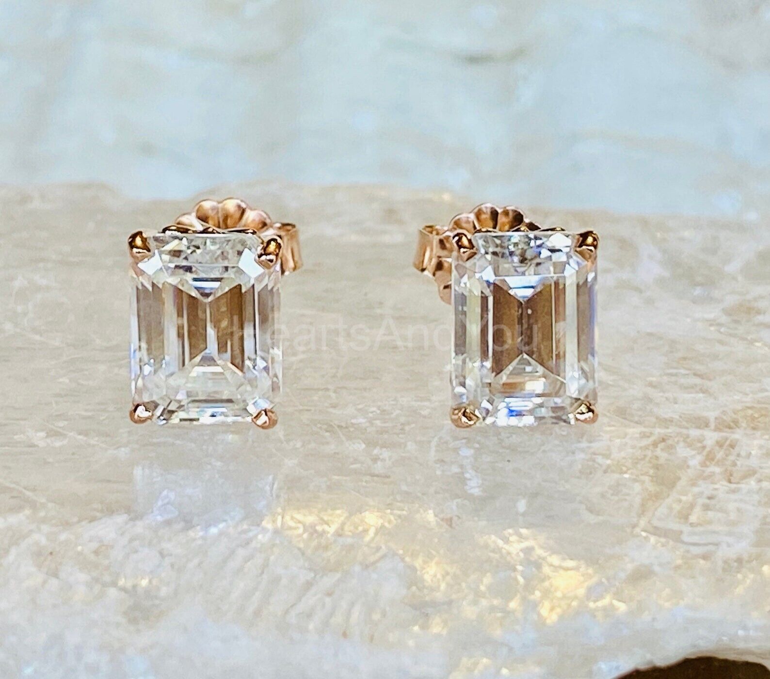 1.5ct Emerald Cut Simulated Diamond Solitaire Stud Earrings 14k Rose Gold Plated