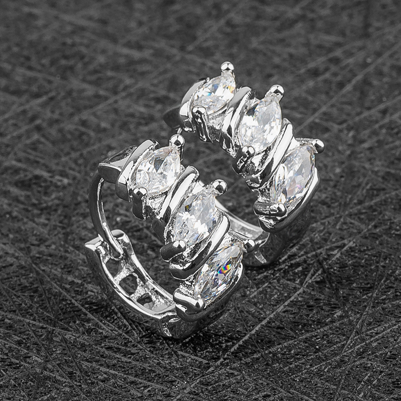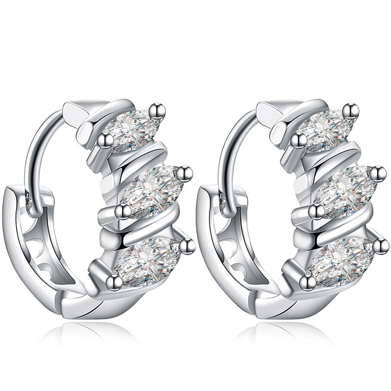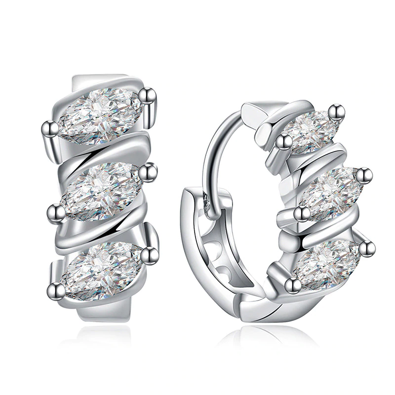 1.5Ct Marquise Cut VVS1/D Diamond Trilogy Huggies Earrings 14K White Gold Finish