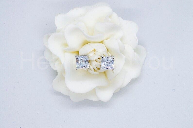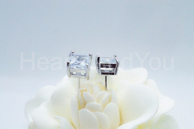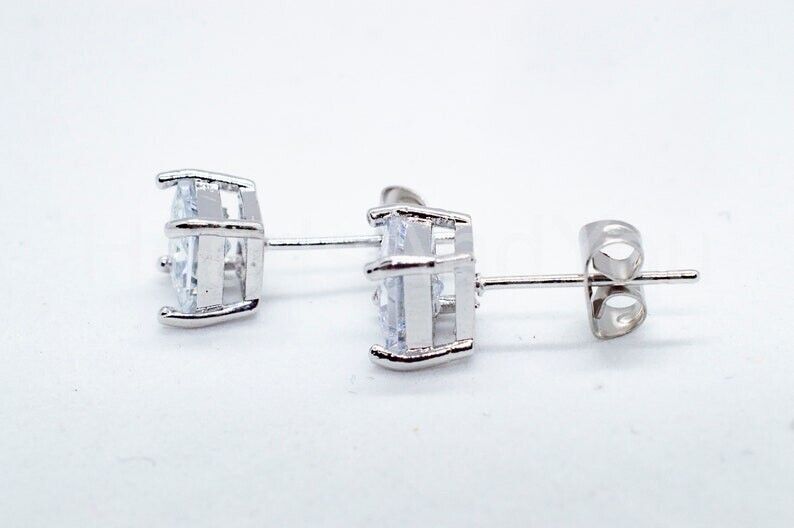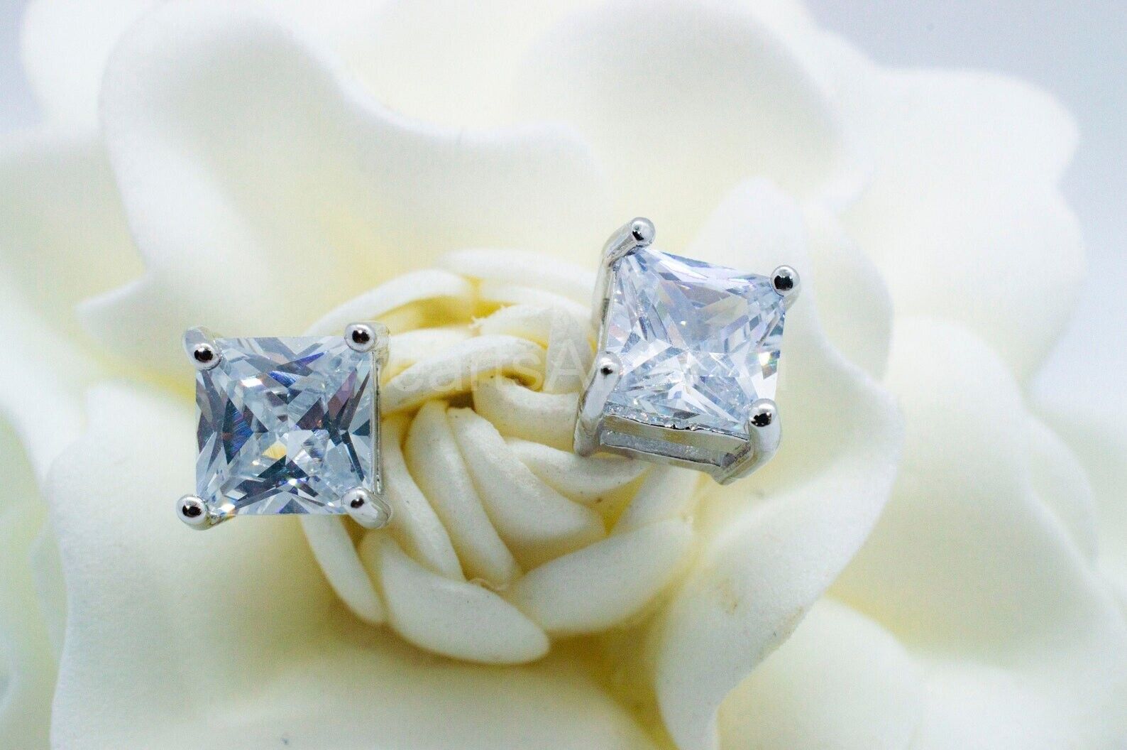 1.5ct Princess Simulated Diamond Solitaire Stud Earrings 14k White Gold Plated