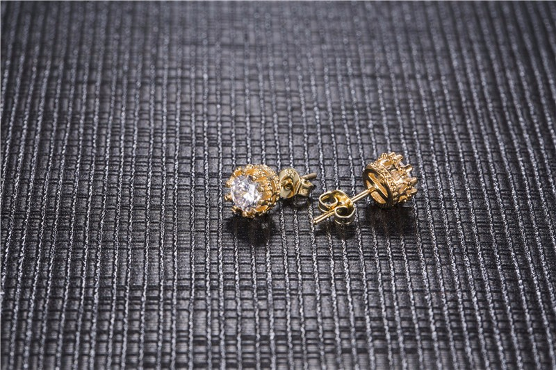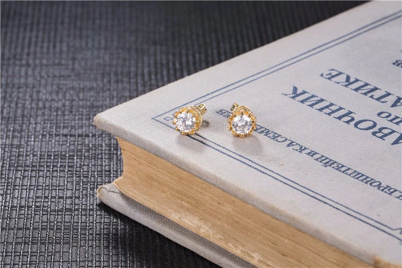 1.5ct Round Cut Diamond Crown Solitaire Stud Earrings 14k Yellow Gold Finish