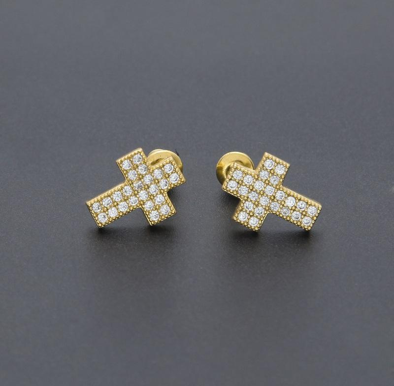 1.5ct Round Cut Diamond Jesus Cross Stud Earrings Women 14k Yellow Gold Finish