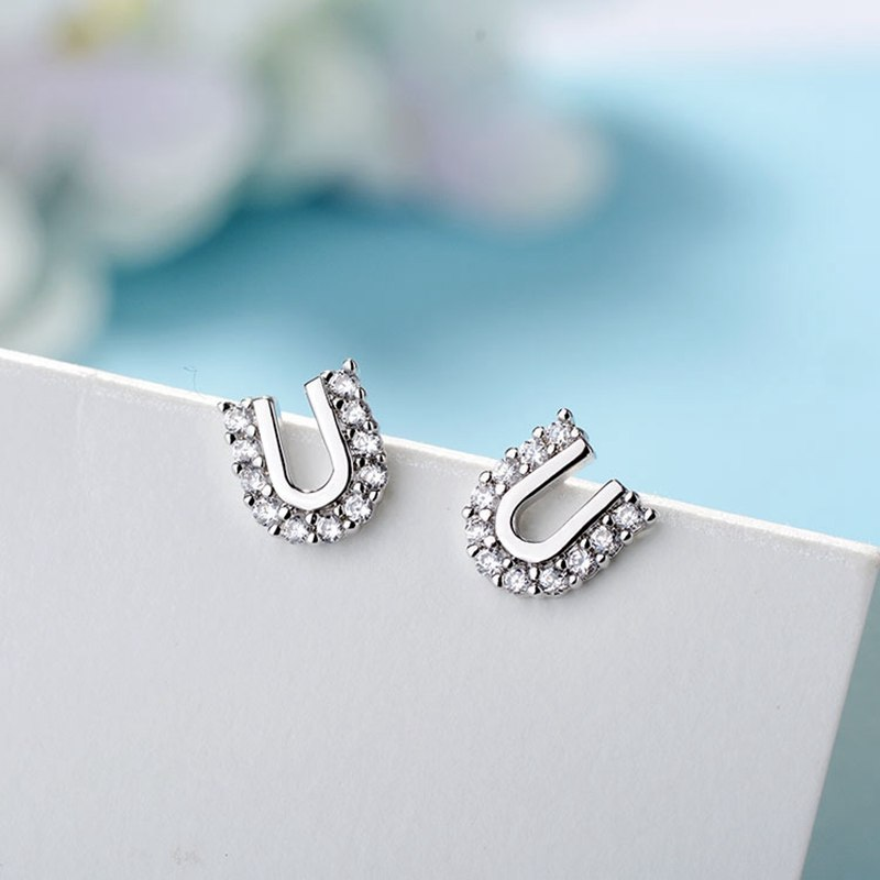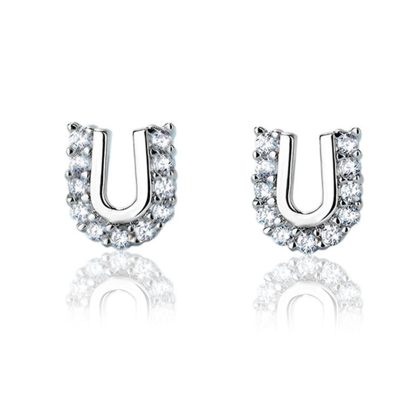 1.5Ct Round Cut Diamond U Shaped Minimalist Stud Earrings 14K White Gold Finish