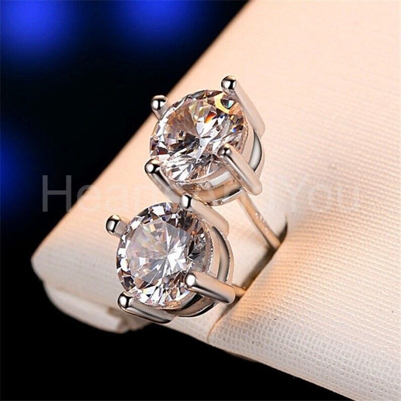 1.5ct Round Cut Moissanite 4 Prong Solitaire Stud Earrings 14K White Gold Plated