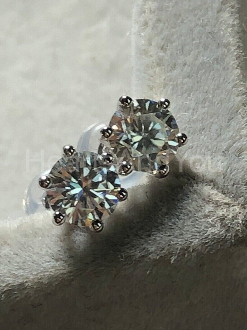 1.5ct Round Cut Moissanite 4 Prong Solitaire Stud Earrings 14k White Gold Plated