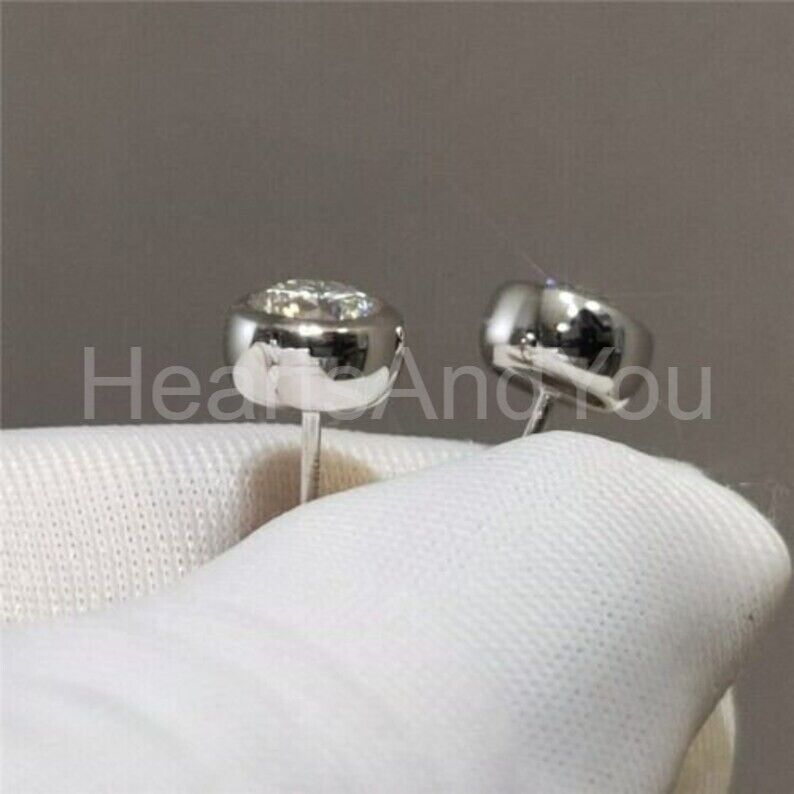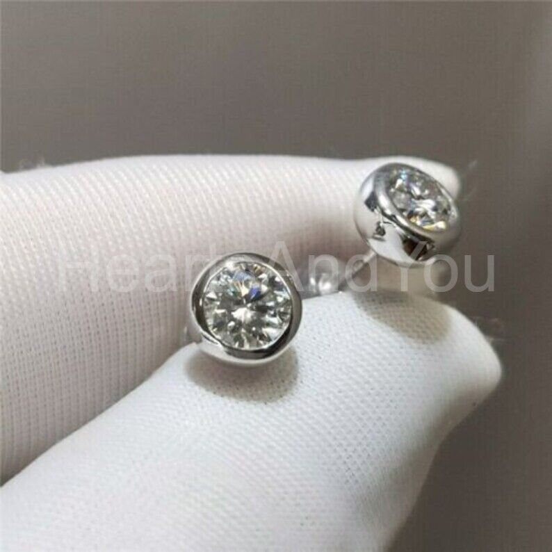 1.5ct Round Cut Moissanite Bezel Solitaire Stud Earrings 14k White Gold Plated