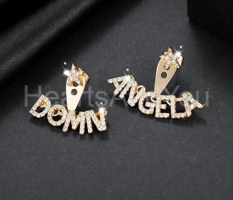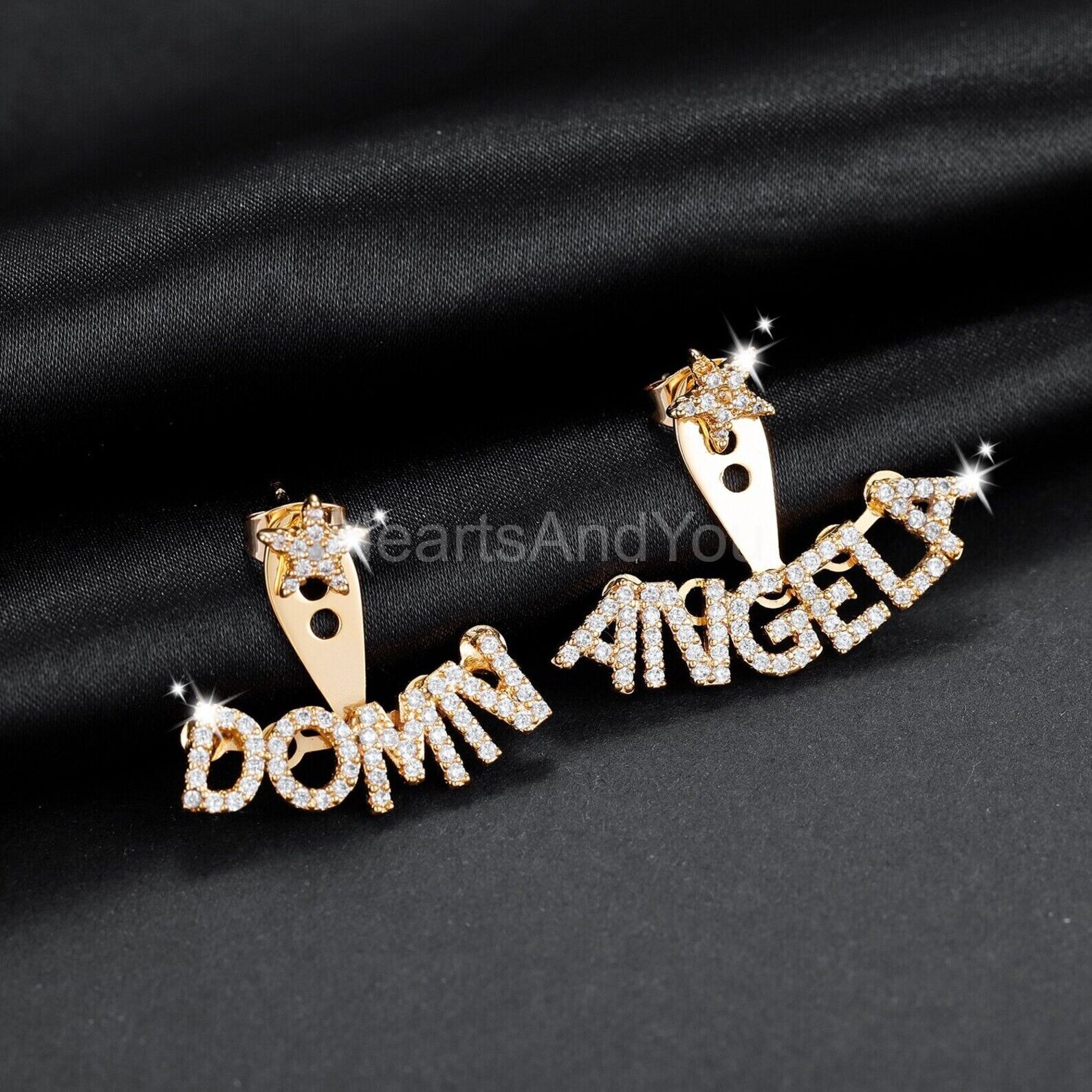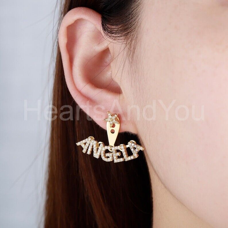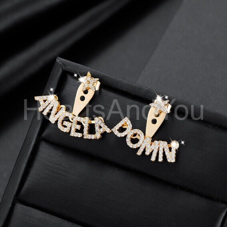 1.5ct Round Cut Moissanite Custom Name Drop Earrings 14k Yellow Gold Plated