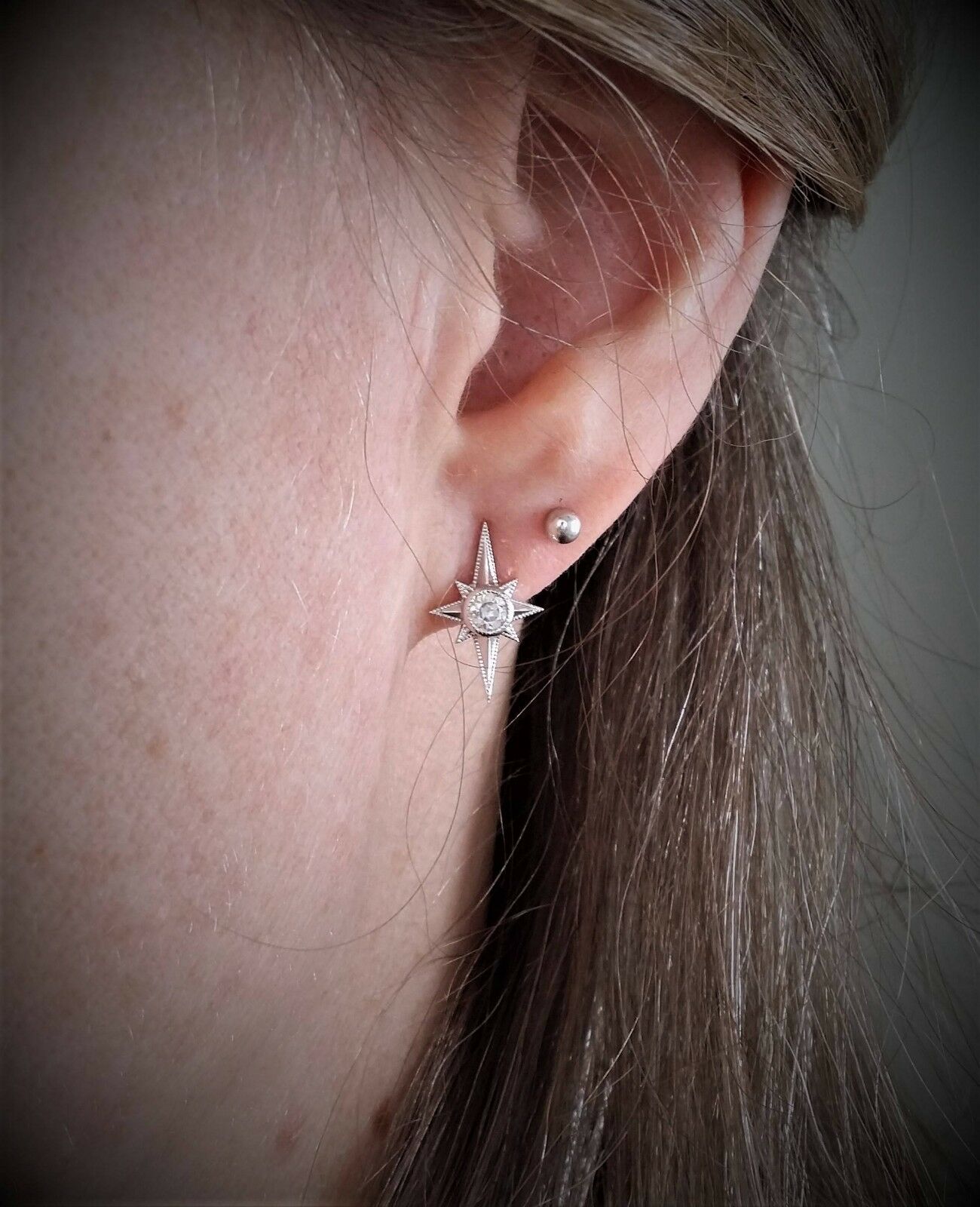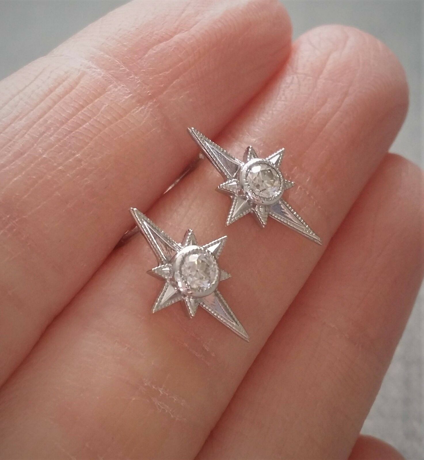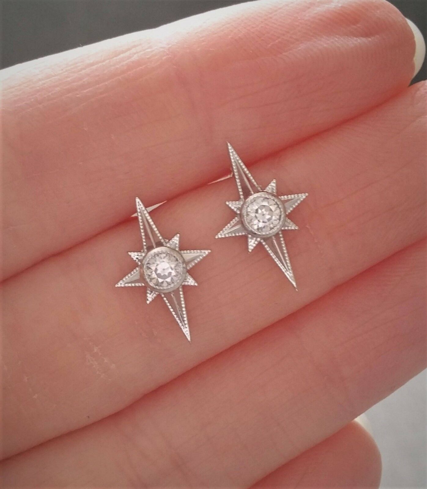 1.5Ct Round Cut VVS1 Diamond Star Celestial Stud Earrings 14K White Gold Finish