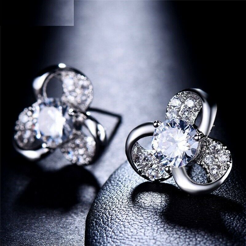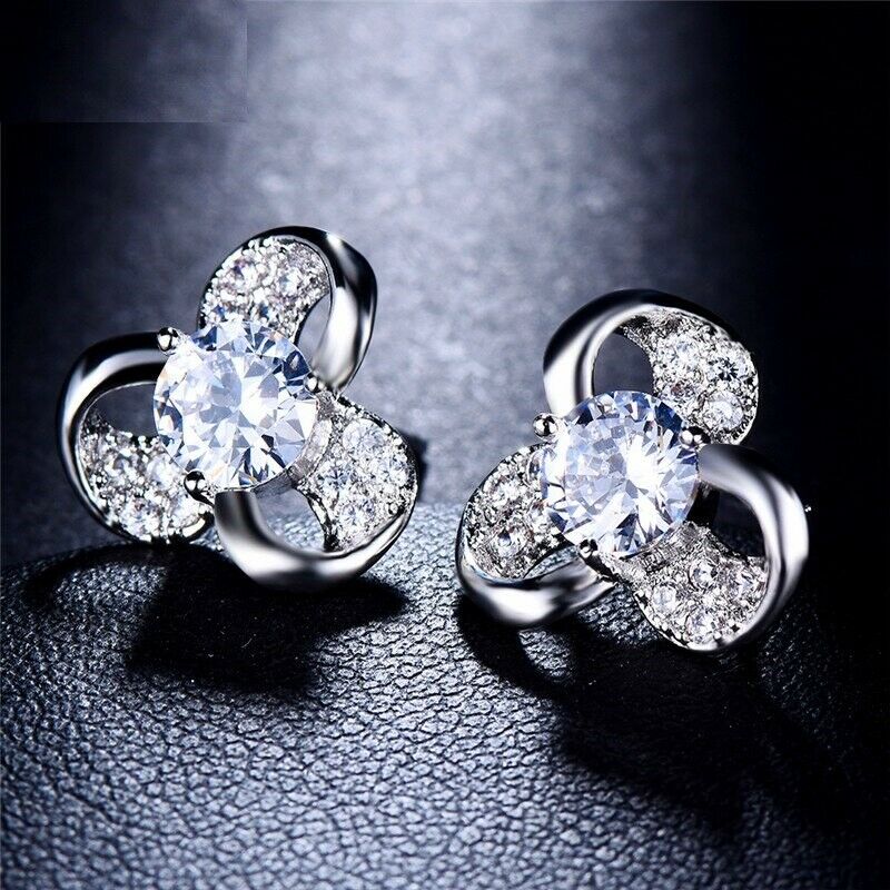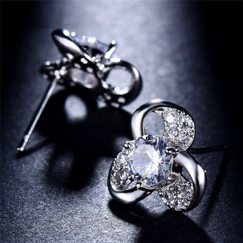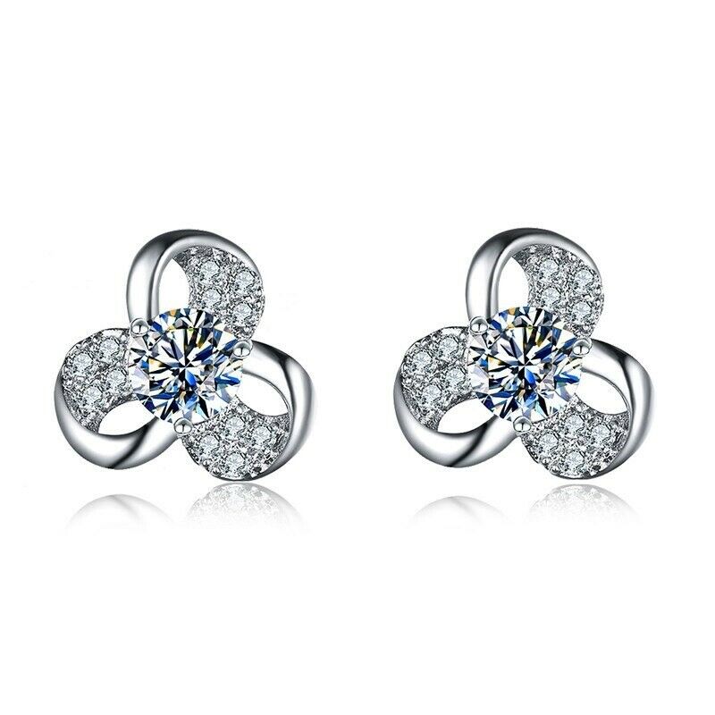 1.5ct Round Cut VVS1D Diamond Flower Design Stud Earrings 14k White Gold Finish