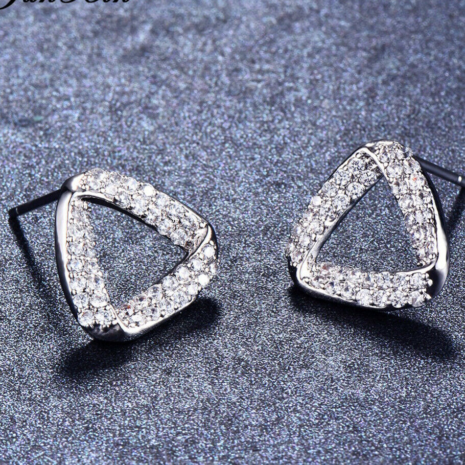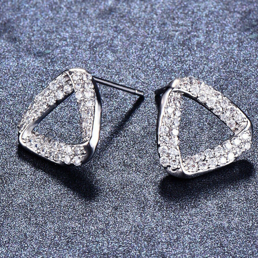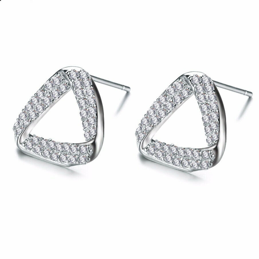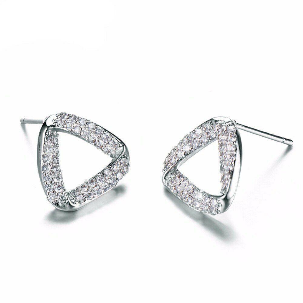 1.5ct Round Cut VVS1D Diamond Triangle Shape Stud Earrings 14k White Gold Finish