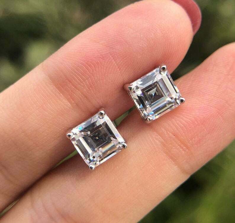 1.5ct Stud Earrings Asscher Cut Diamond Solitaire Women 14k White Gold Finish