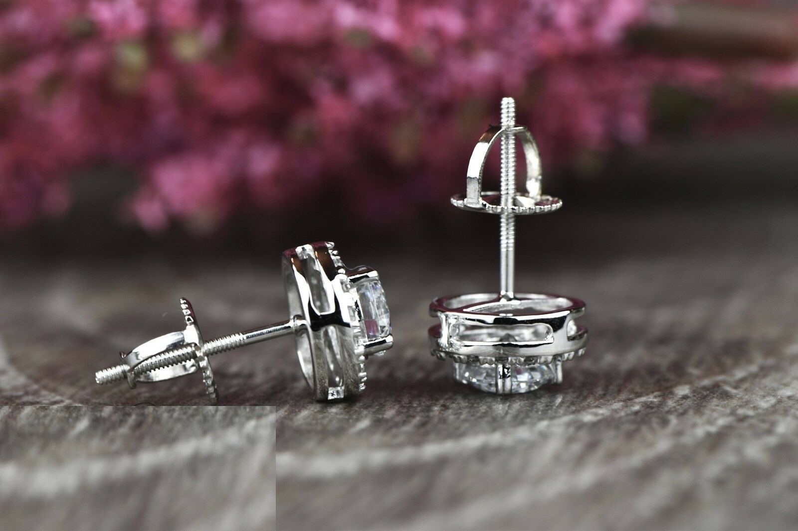 1.6ct Round Cut Diamond Halo Screwback Bridal Stud Earrings 14k WhiteGold Finish