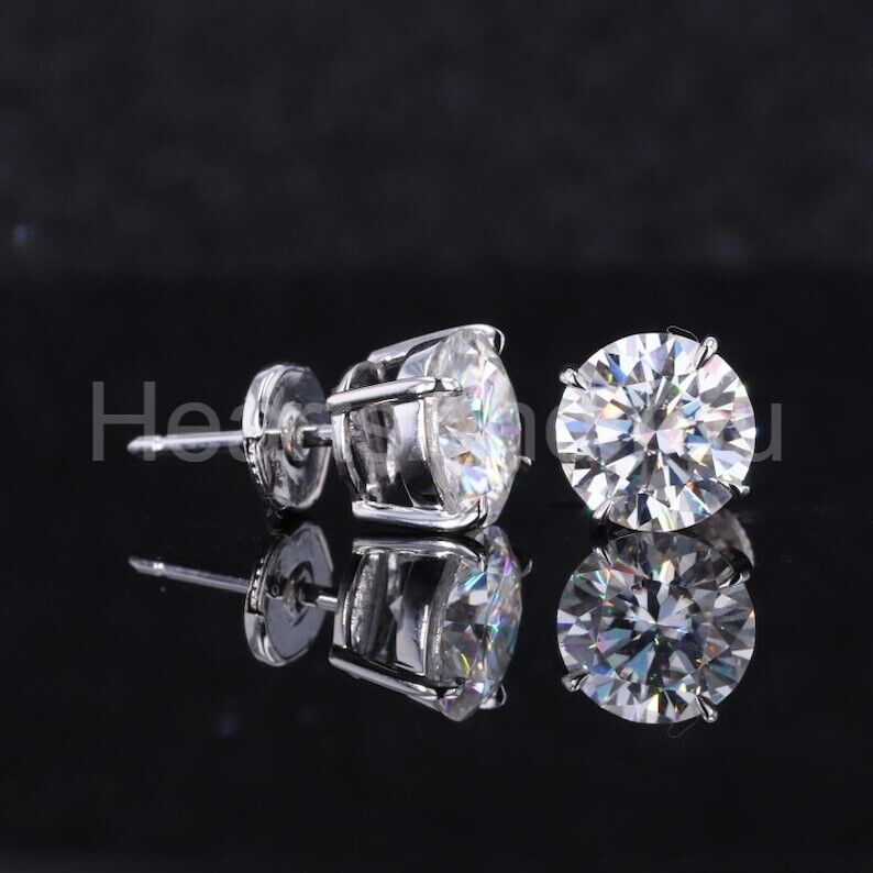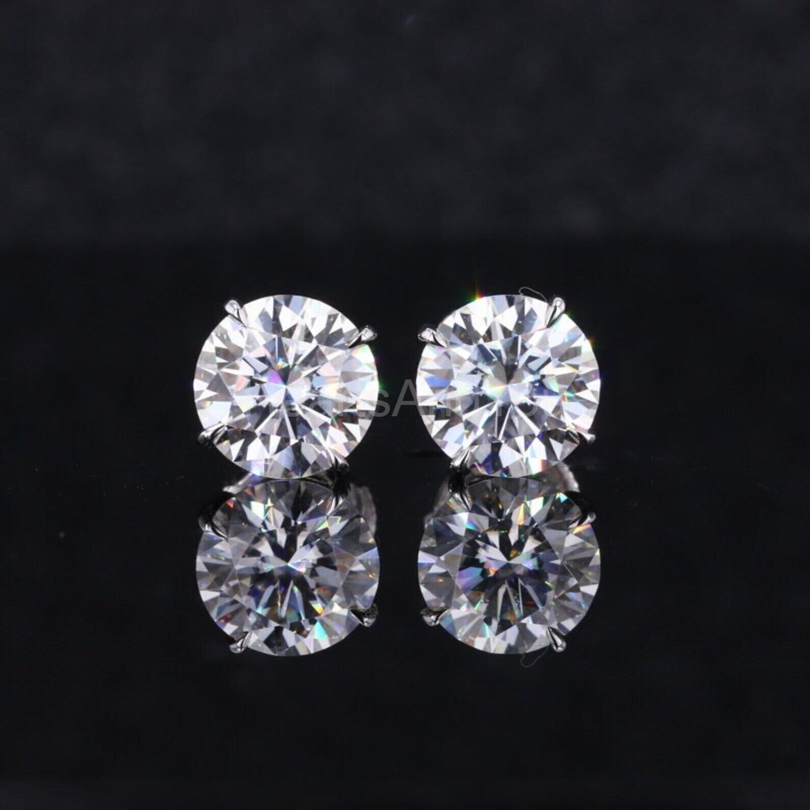 1.6ct Round Cut Moissanite Solitaire Stud Women Earrings 14k White Gold Plated