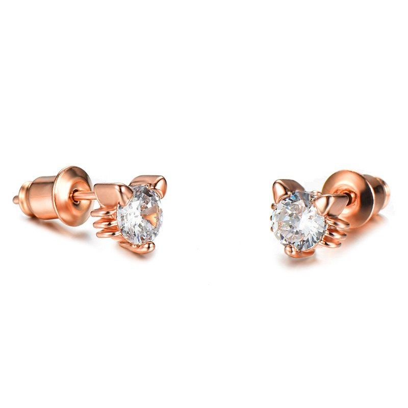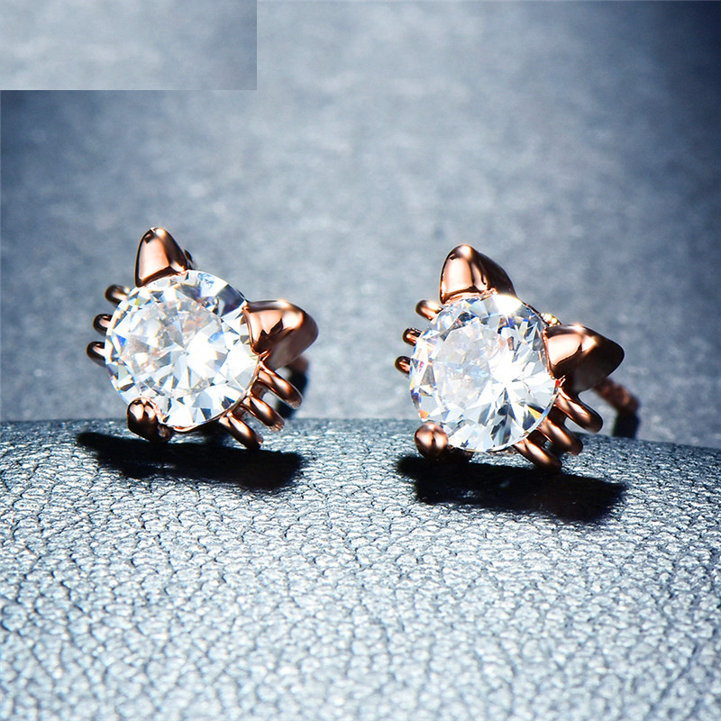 1.6ct Round Cut VVS1D Diamond Cute Cat Design Stud Earrings 14k Rose Gold Finish