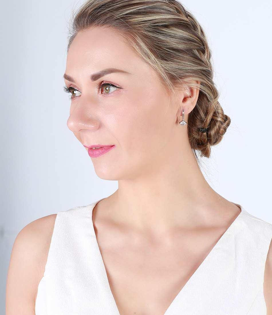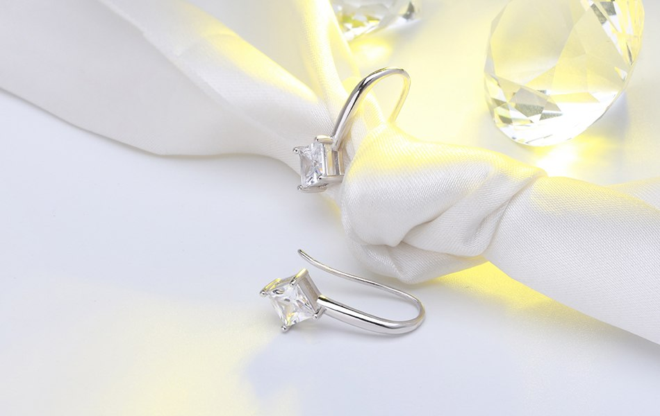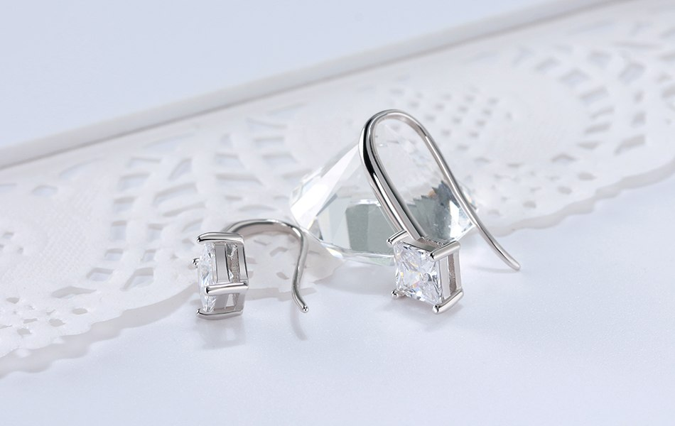 1.7ct Princess Cut Diamond 4 Prong Solitaire Drop Earrings 14k White Gold Finish