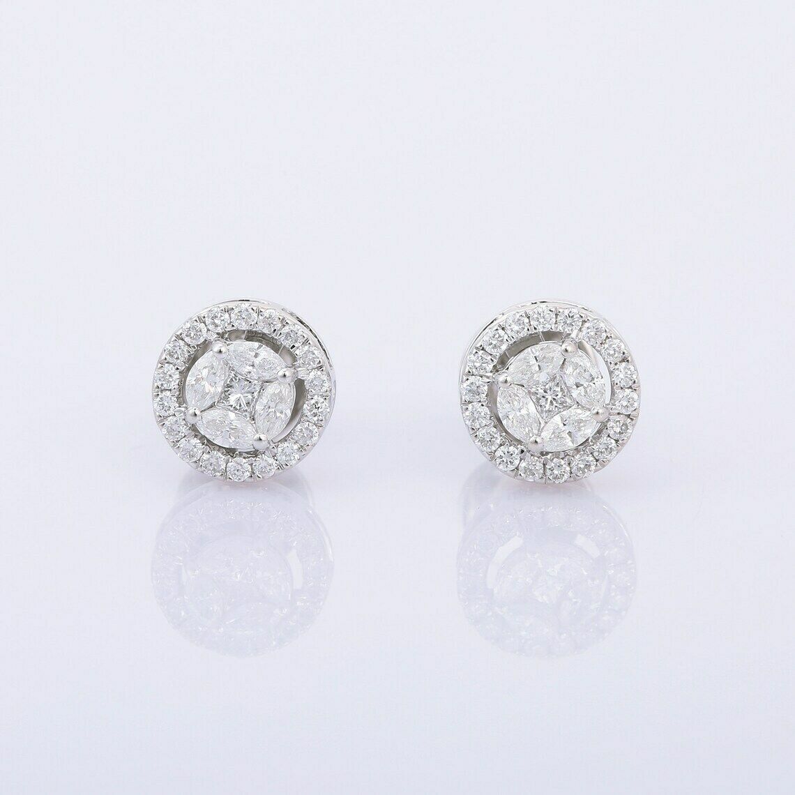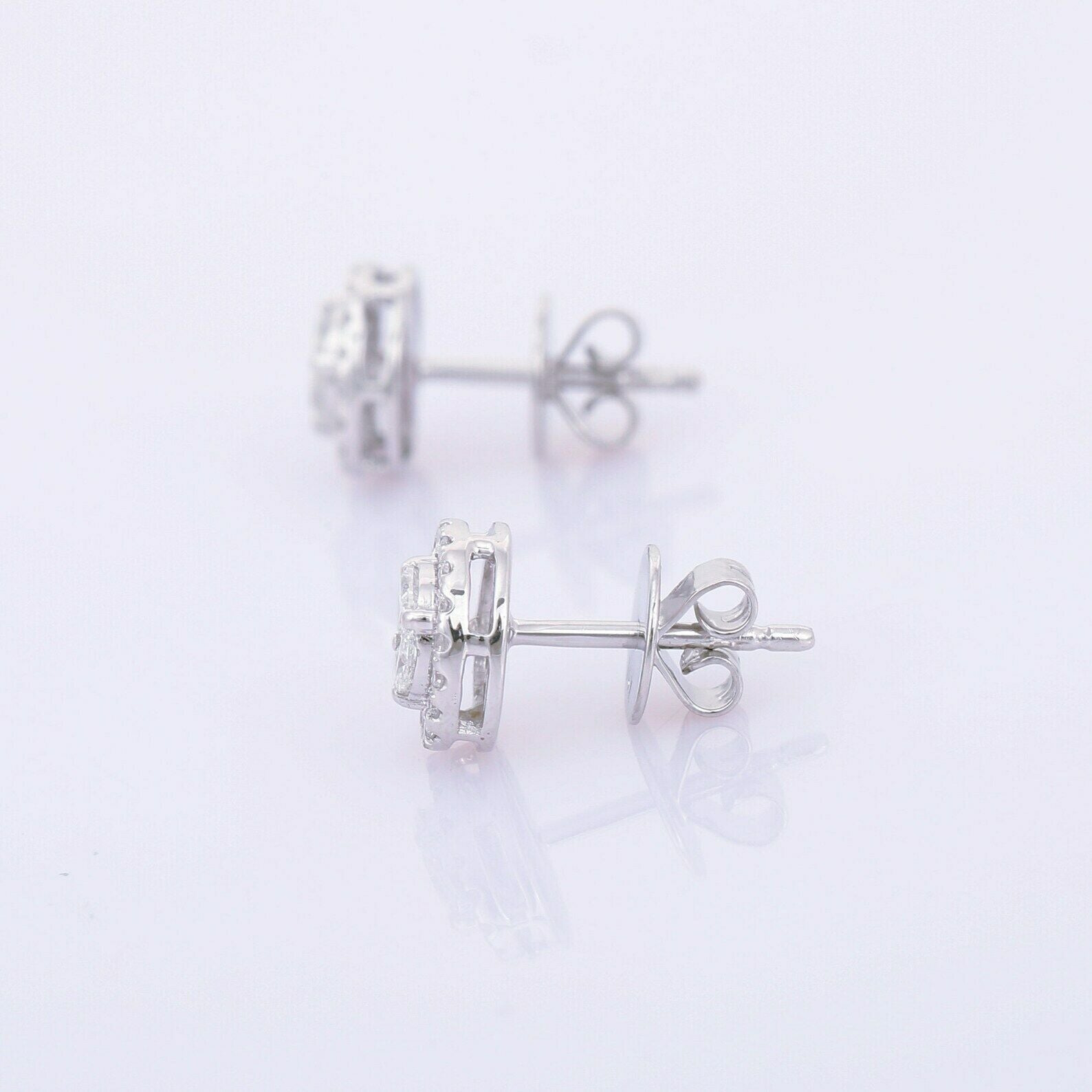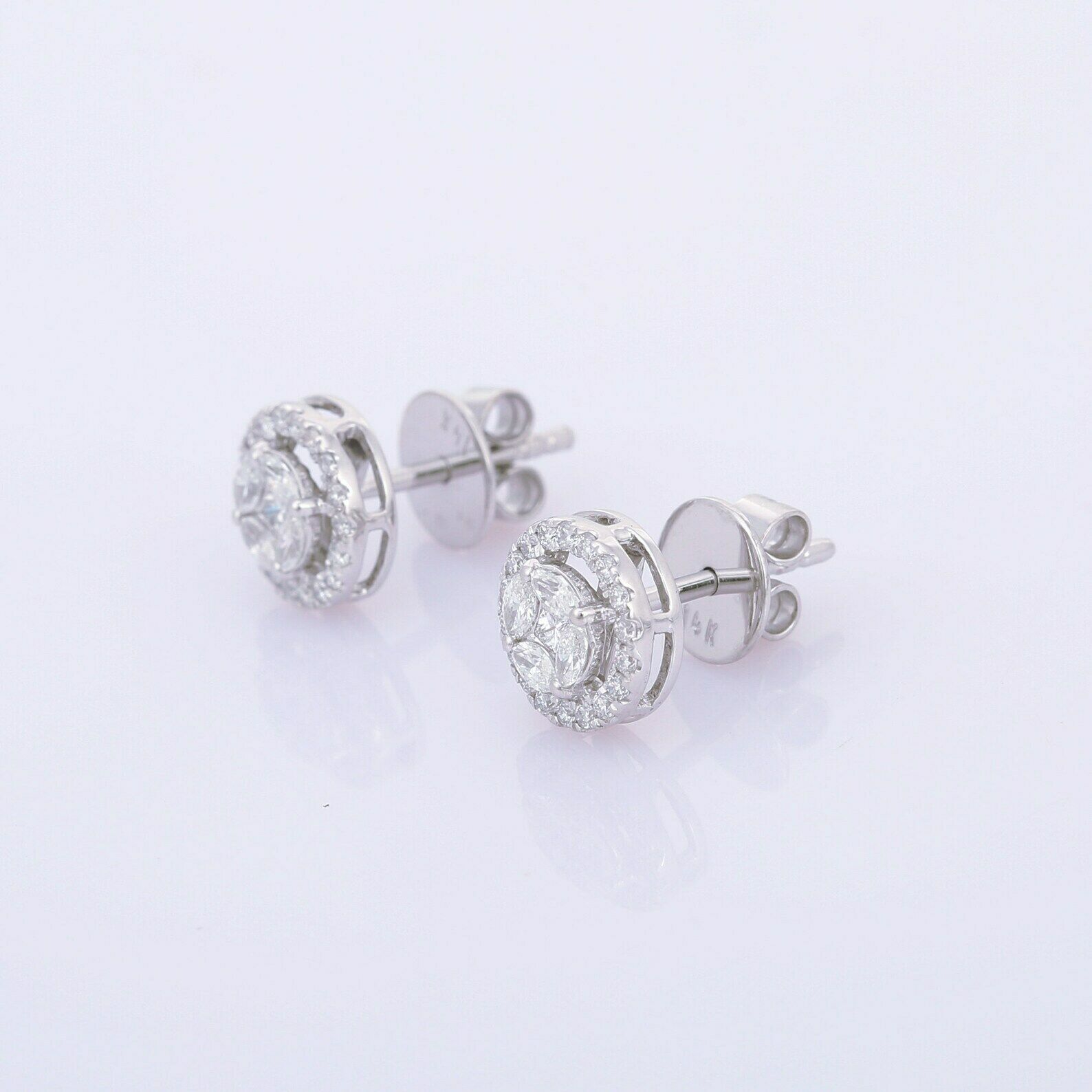 1.7ct Stud Earrings Marquise Cut Diamond Cluster Halo 14k White Gold Finish