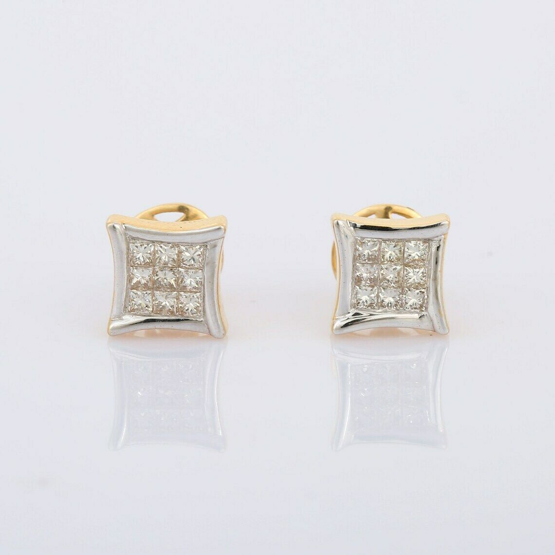 1.7ct Stud Earrings Princess Cut Diamond Kite Cluster 14k Yellow Gold Finish