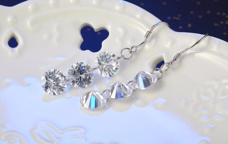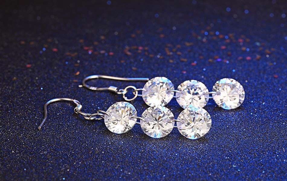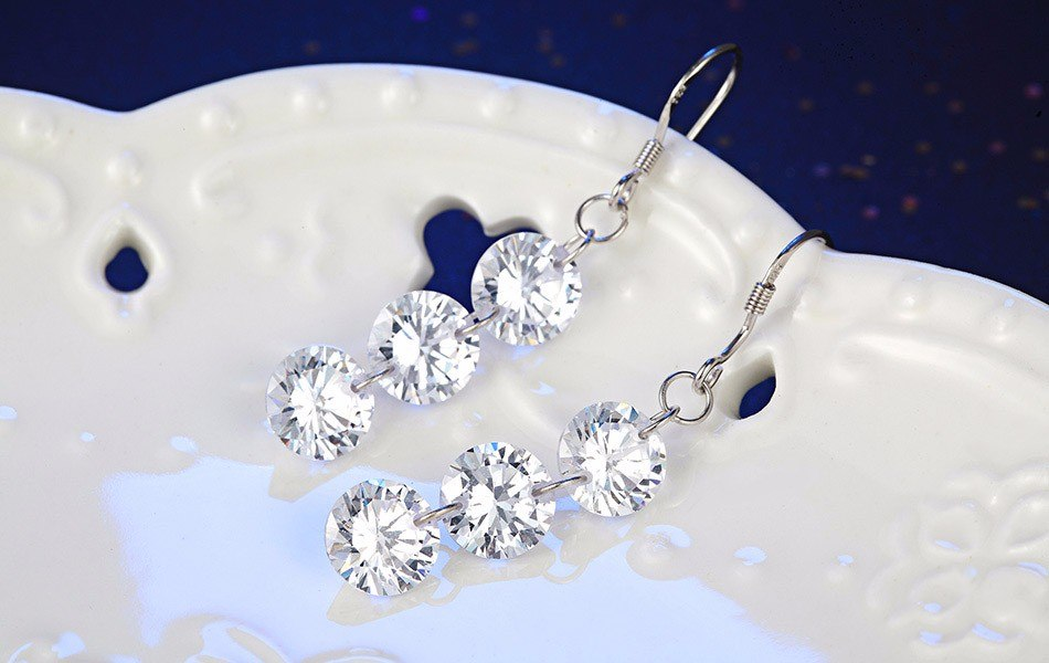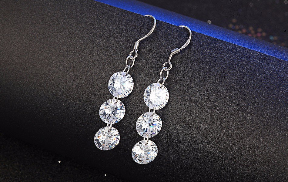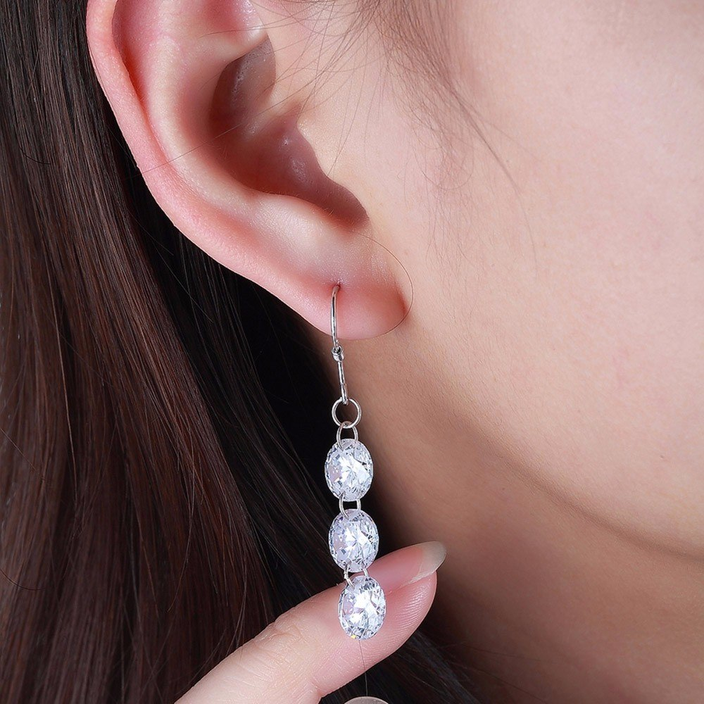 1.8ct Round Cut VVS1D Diamond Three Stone Dangle Earrings 14k White Gold Finish
