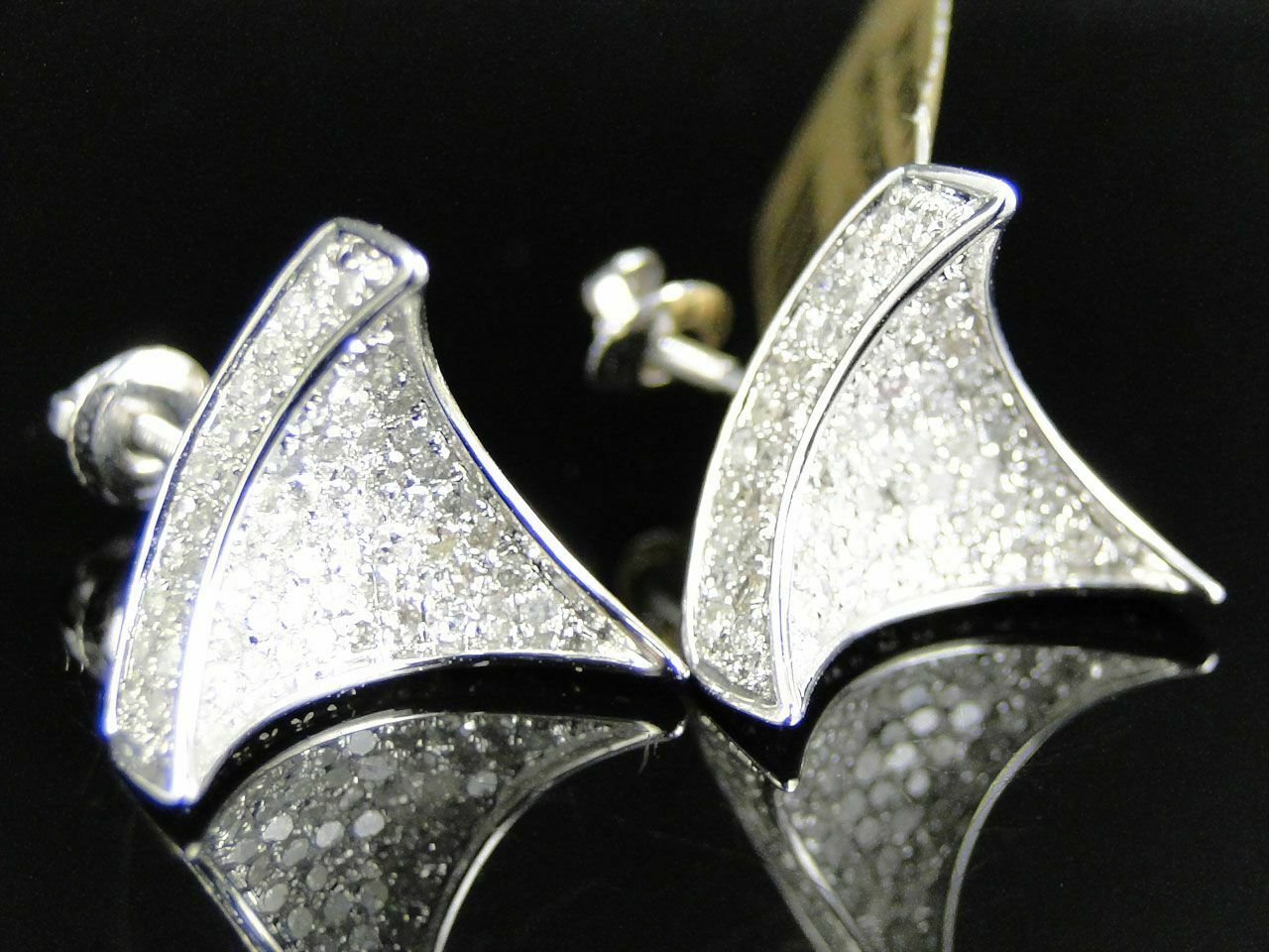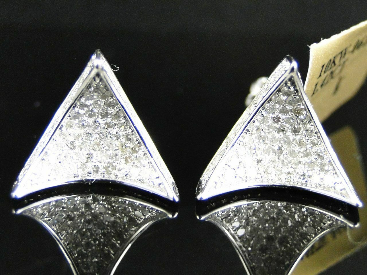1.92ct Round Cut VVS1D Diamond 3D Triangle Stud Earrings 14k White Gold Finish