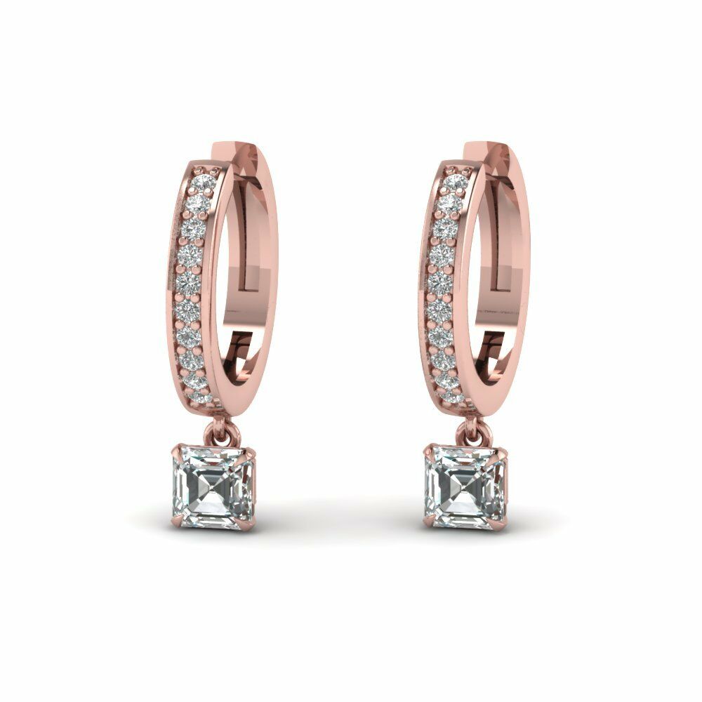 1ct Asscher Cut VVS1 Diamond Hoop Design Drop Earring Women 14k Rose Gold Finish