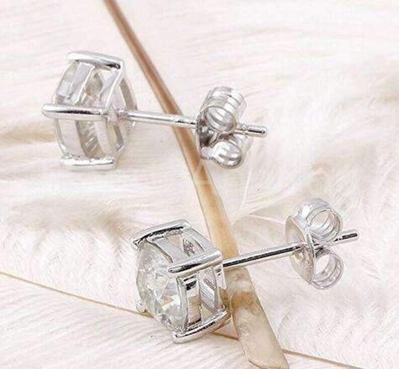 1ct Cushion Cut Simulated Diamond Solitaire Stud Earrings 14k White Gold Plated