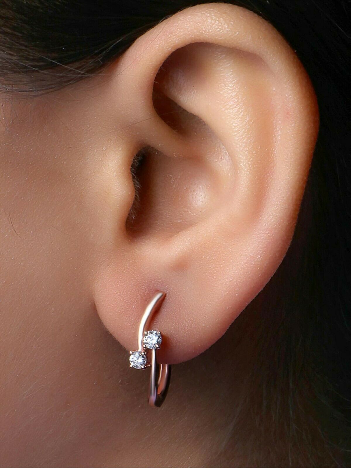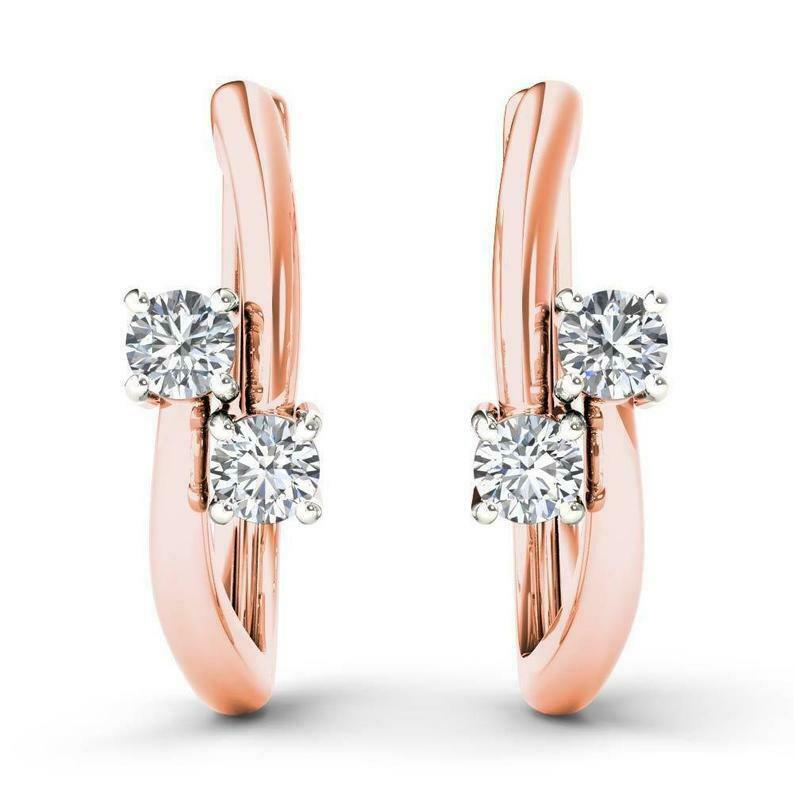 1ct Drop Earrings Round Cut Diamond Two Stone Latch Back 14k Rose Gold Finish