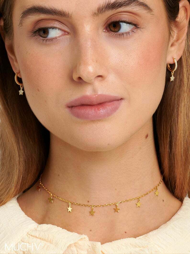 1ct Huggies Earrings Round Cut Diamond Studded Star 14k Yellow Gold Finish