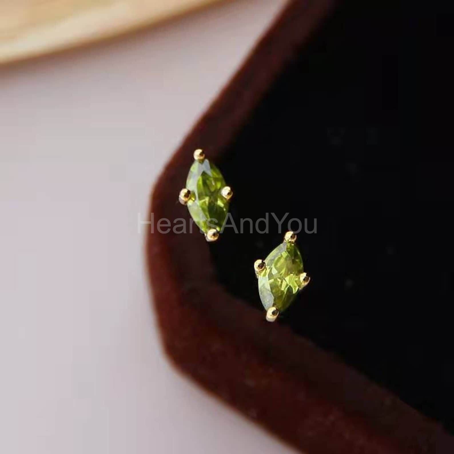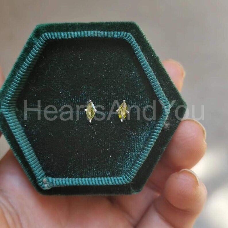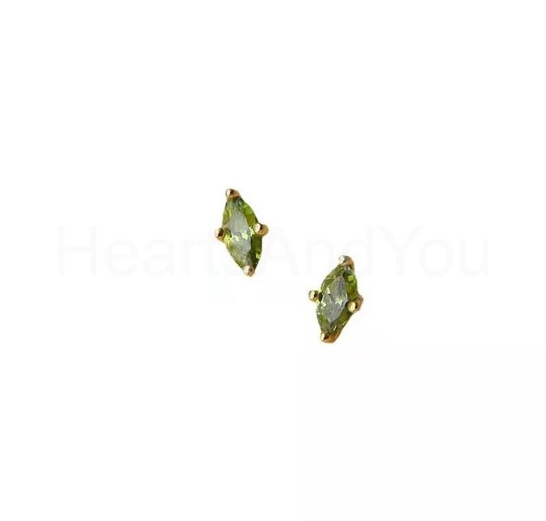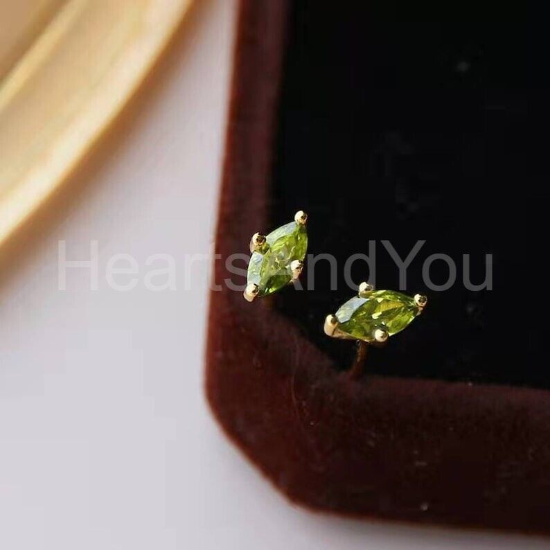 1ct Marquise Simulated Peridot Minimalist Stud Earrings 14k Yellow Gold Plated
