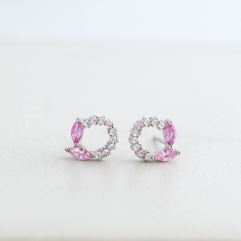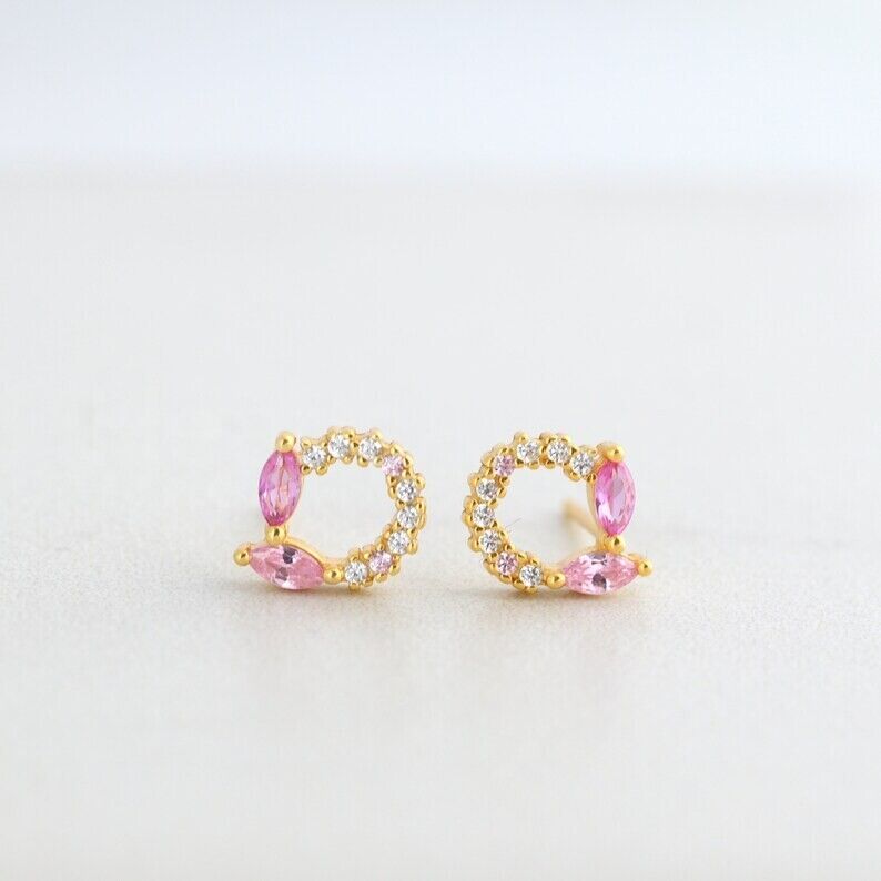 1ct Marquise Simulated Pink Sapphire Open Circle Stud Earrings 14k Gold Plated