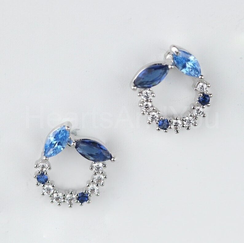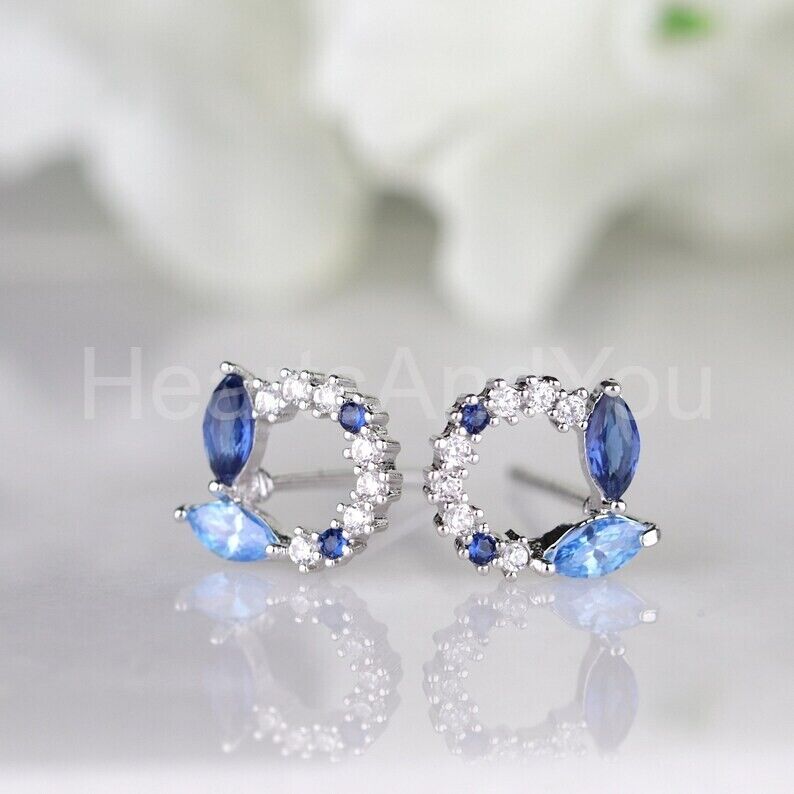 1ct Marquise Simulated Sapphire Open Circle Stud Earrings 14k White Gold Plated