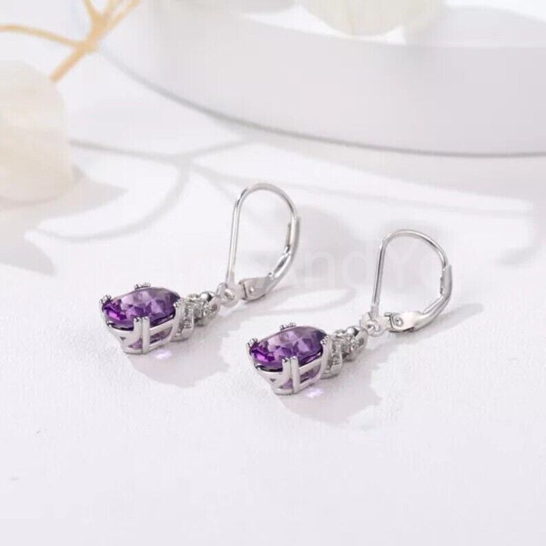 1ct Oval Simulated Amethyst Party Stylish Drop Earrings 14k White Gold Plated