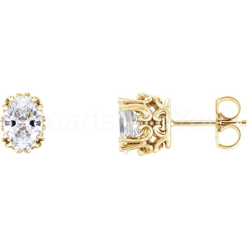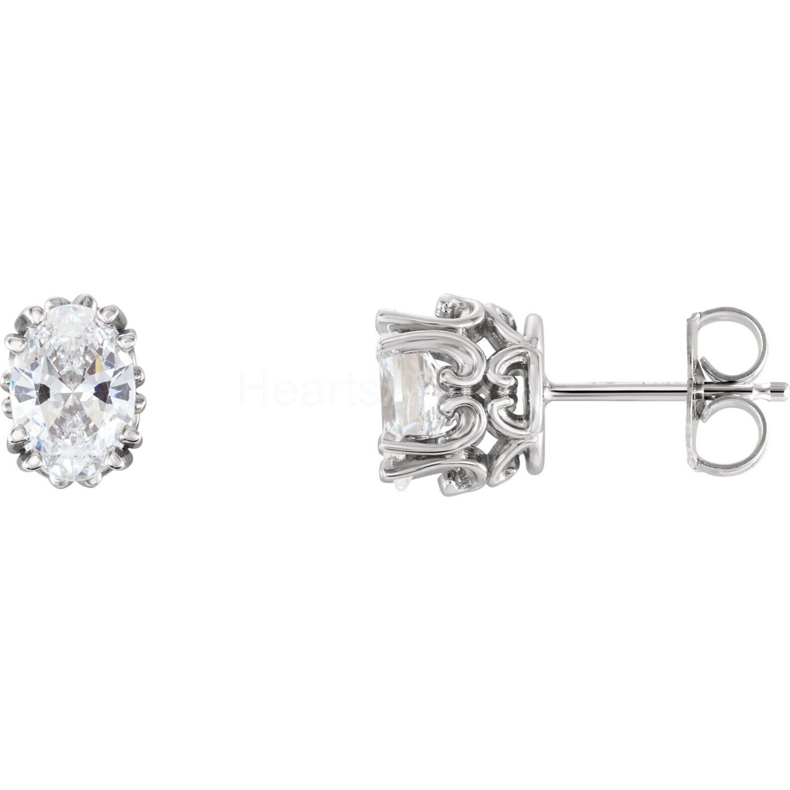 1ct Oval Simulated Diamond Vintage-Inspired Stud Earrings 14k White Gold Plated