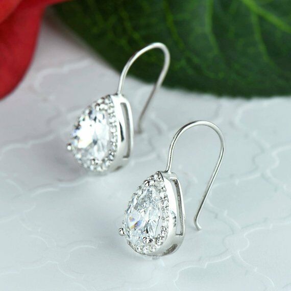 1ct Pear Cut Diamond Tear Drop Stud Hook Earrings Women 14k White Gold Finish