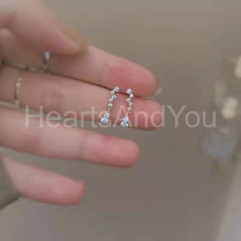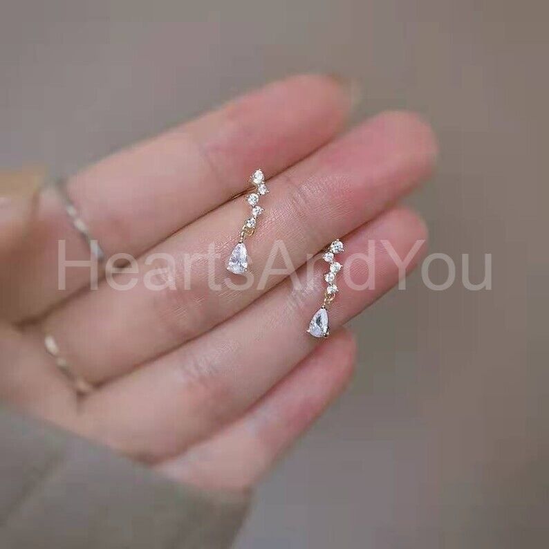 1ct Pear Simulated Diamond Dainty Minimalist Drop Earrings 14k YellowGold Plated