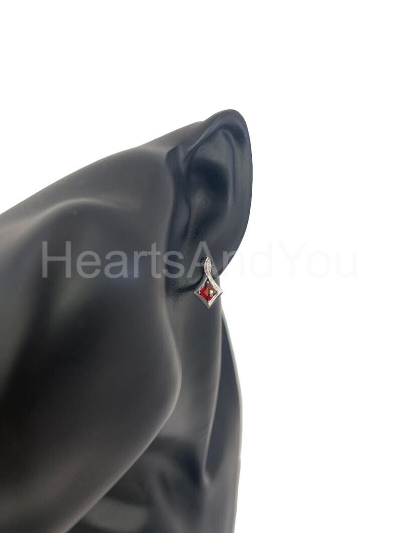 1ct Princess Cut Simulated Red Garnet Stylish Drop Earrings 14k White Gold Plated