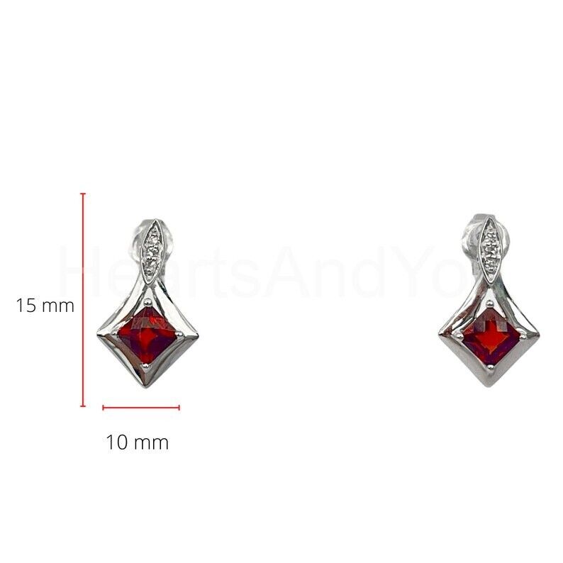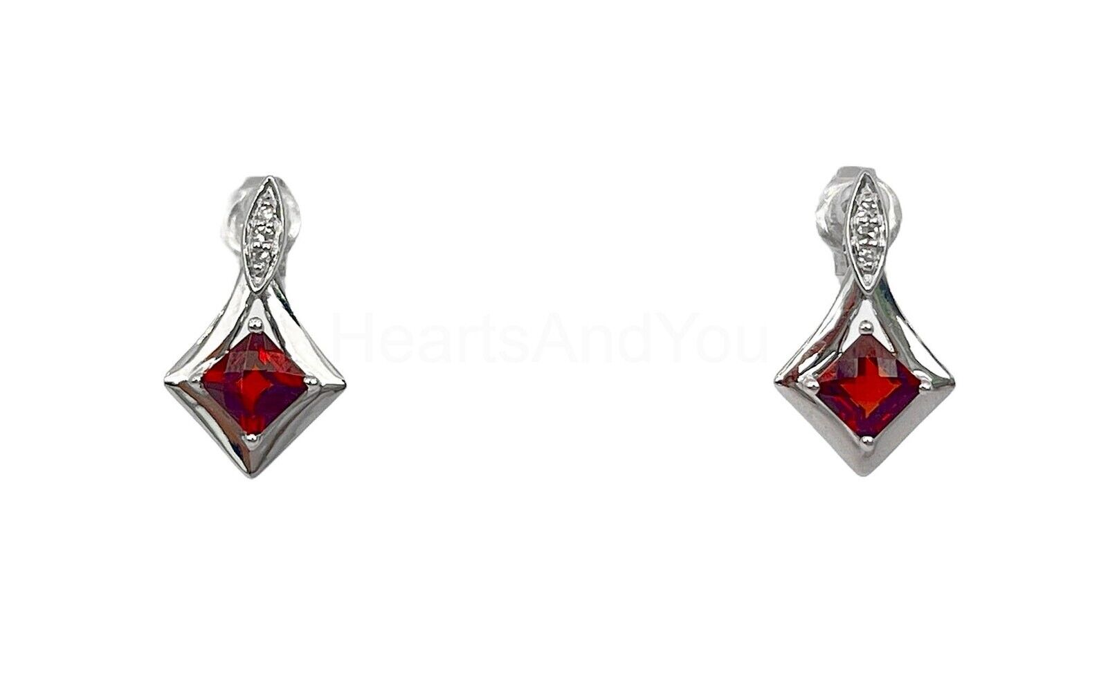 1ct Princess Cut Simulated Red Garnet Stylish Drop Earrings 14k WhiteGold Plated