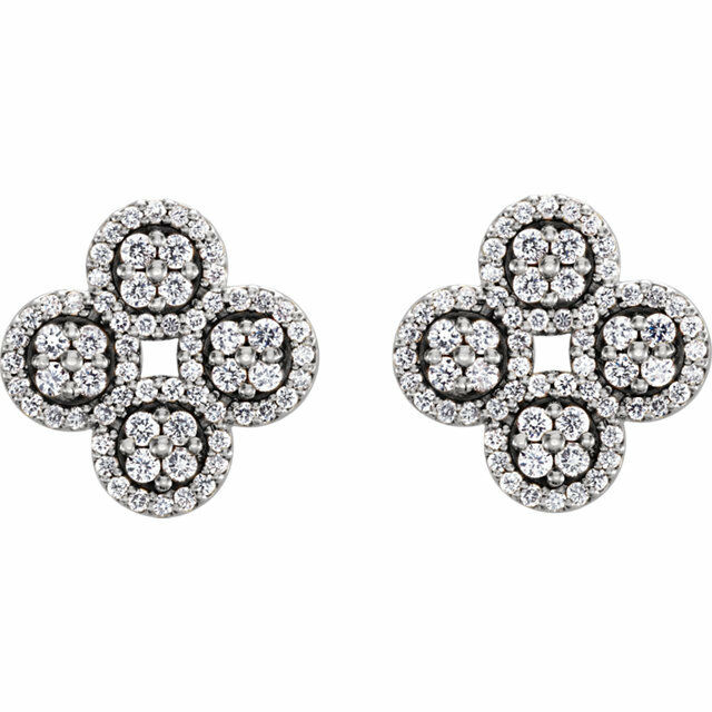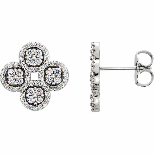 1ct Round Cut Diamond Clover Cluster Stud Earring Women 14k White Gold Finish