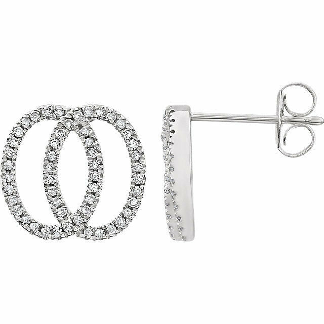 1ct Round Cut Diamond Intertwined Circles Stud Earring 14k White Gold Finish New