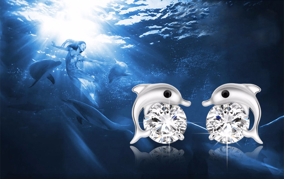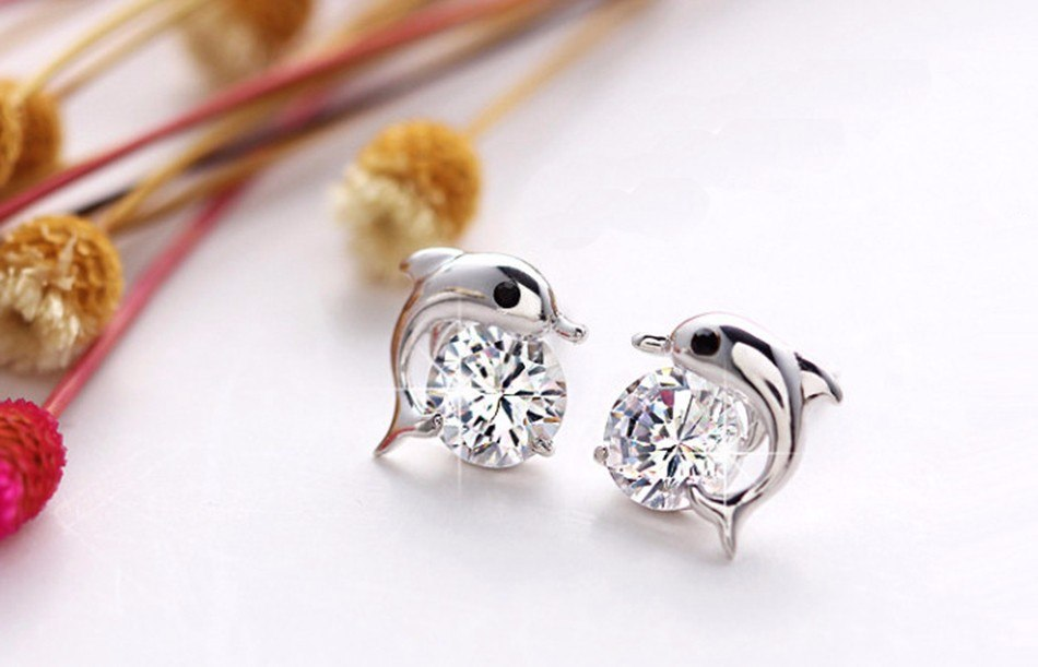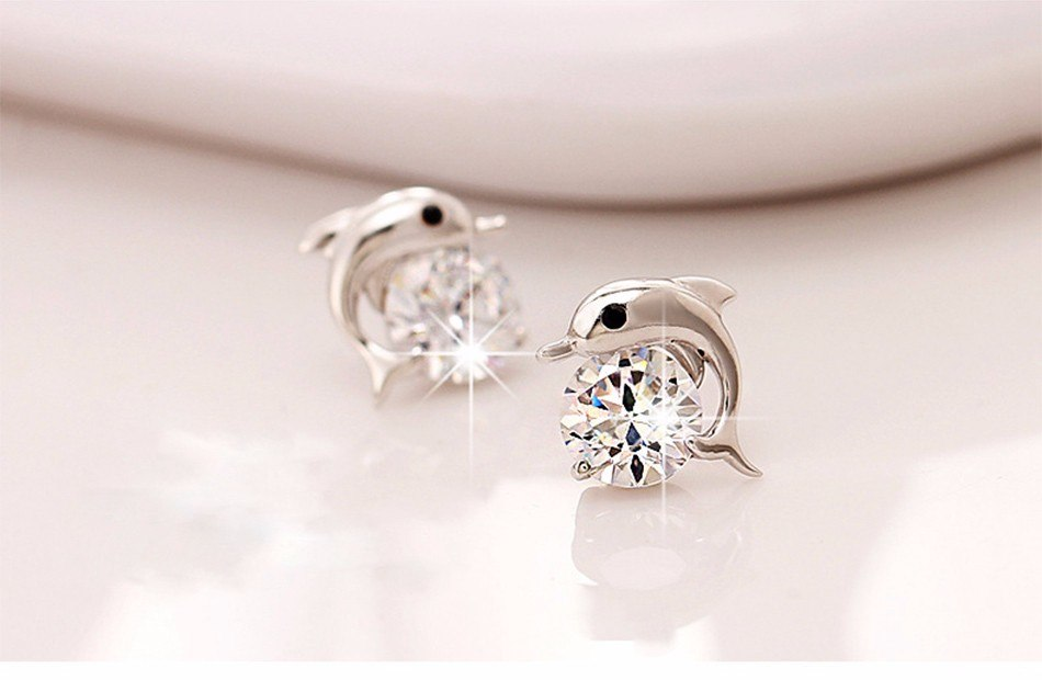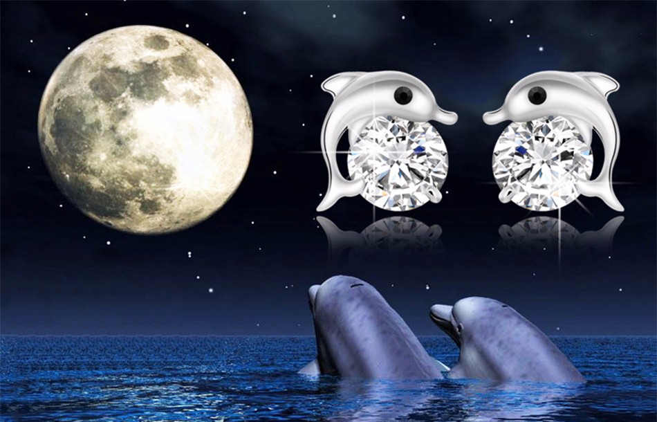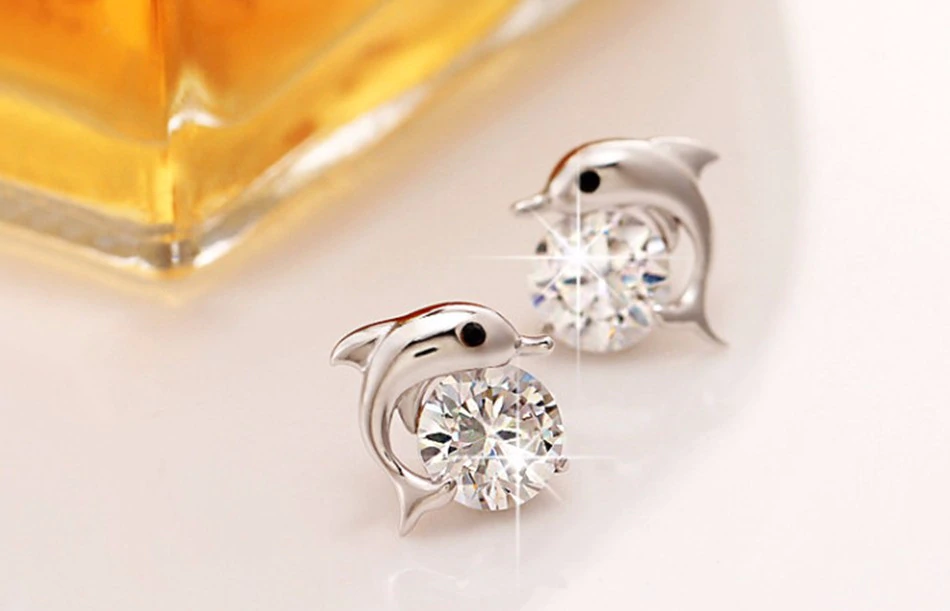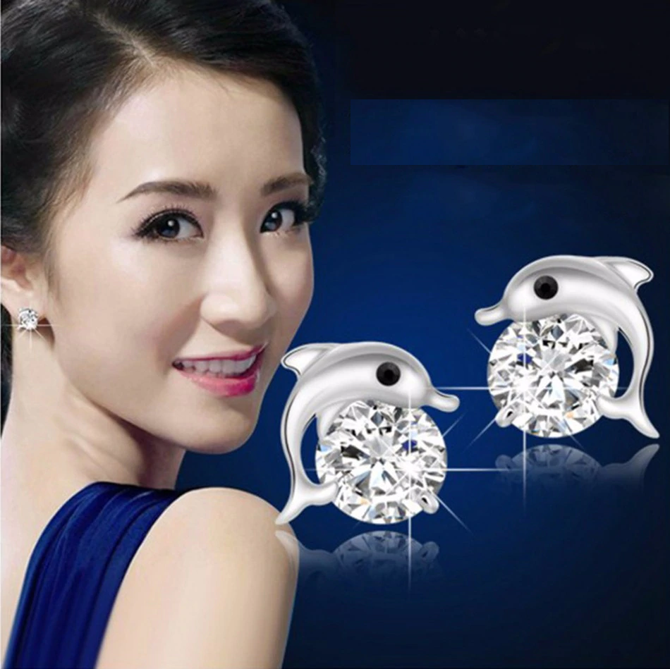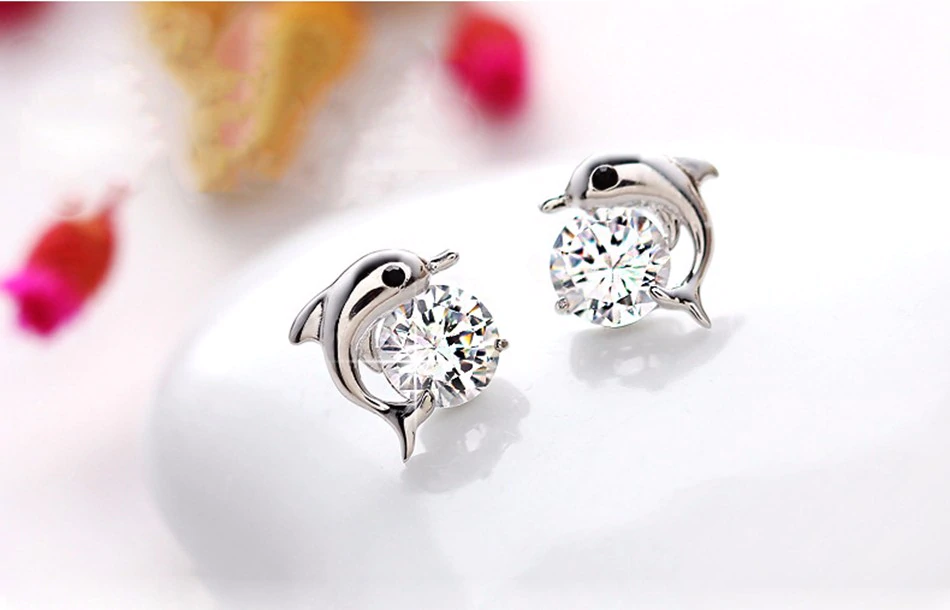 1ct Round Cut Diamond Unique Little Dolphin Stud Earrings 14k White Gold Finish