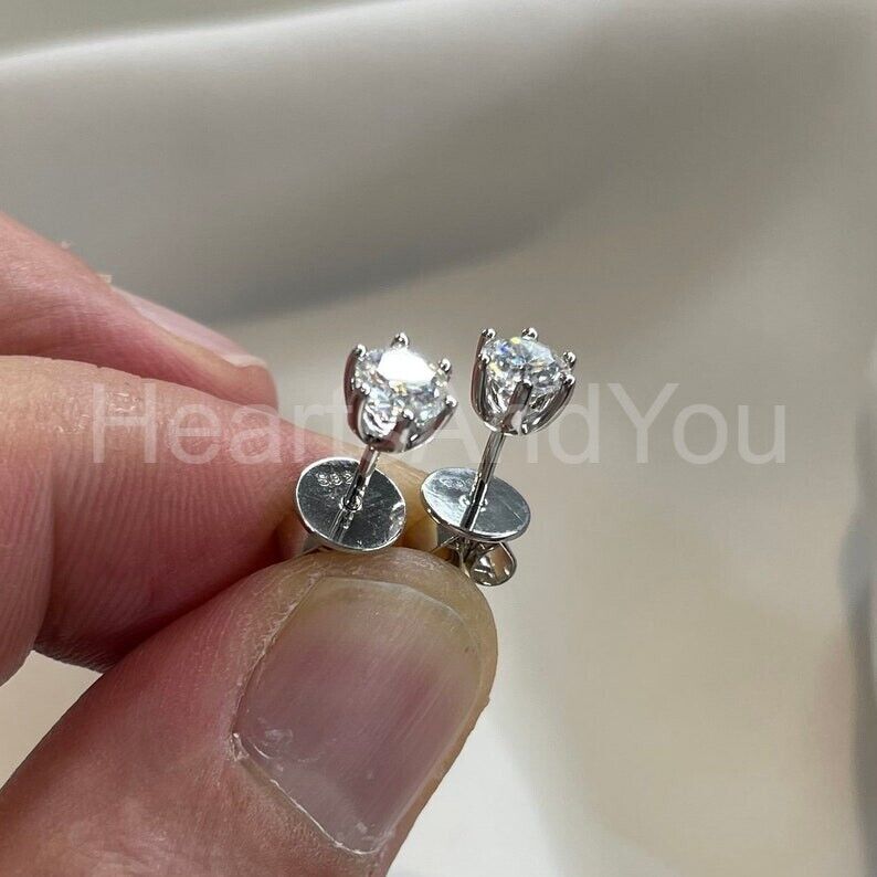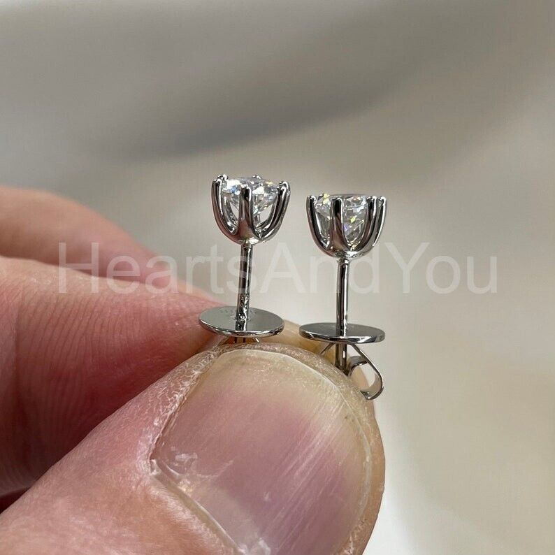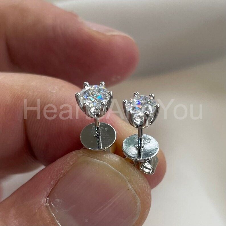 1ct Round Cut Moissanite 6-Prong Solitaire Stud Earrings 14K White Gold Plated