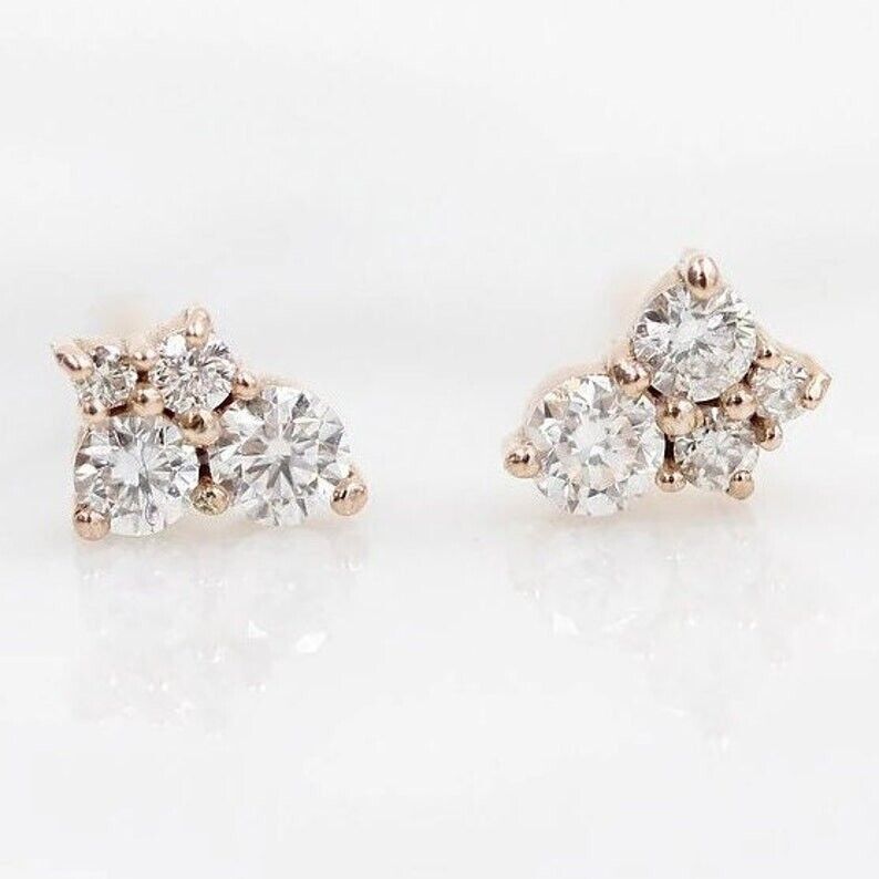1ct Round Cut Moissanite Cluster Stud Earrings For Women 14k Yellow Gold Plated